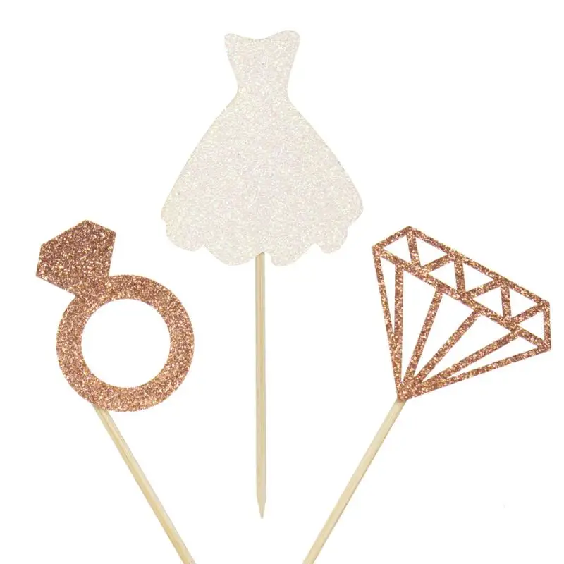 12 шт. кольцо с бриллиантами топперы для капкейков свадебная корона для невесты Топпер для торта для свадьбы девичника дня рождения Декор для куриной вечевечерние НКИ