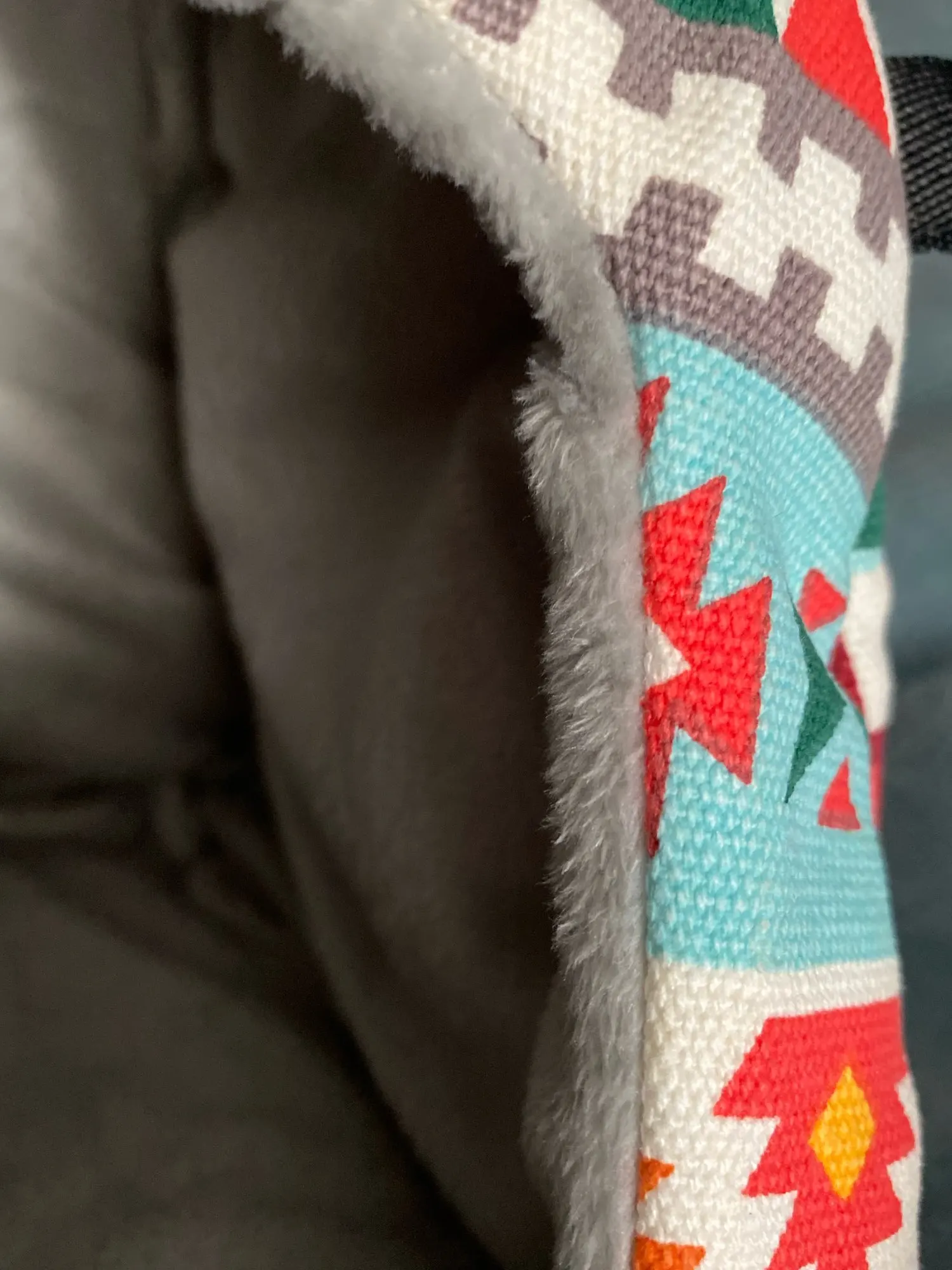 Снаружи парусина со слоем губчатой поддержки посередине, внутри фланелетка, очень мягкая и уютная.