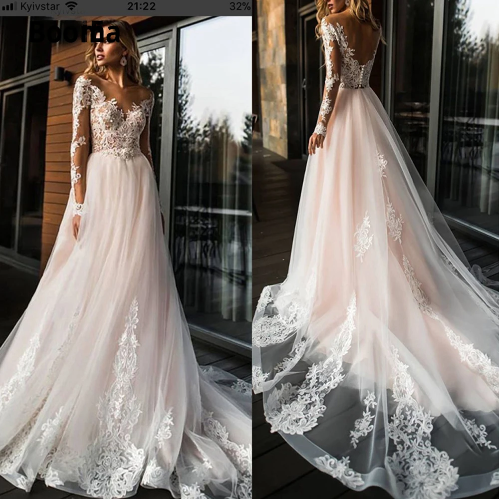 Женское свадебное платье с длинным рукавом Booma, ТРАПЕЦИЕВИДНОЕ св...