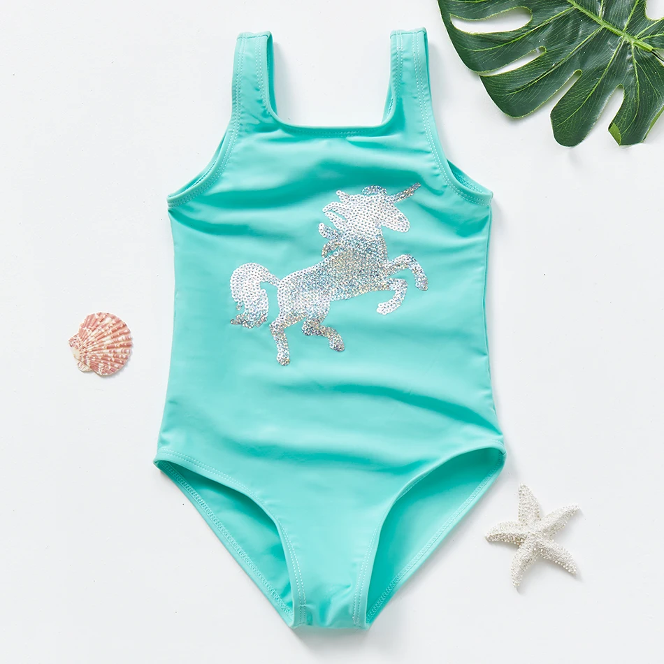Детский слитный купальник, с единорогом, блестками, для детей 2-9 л...