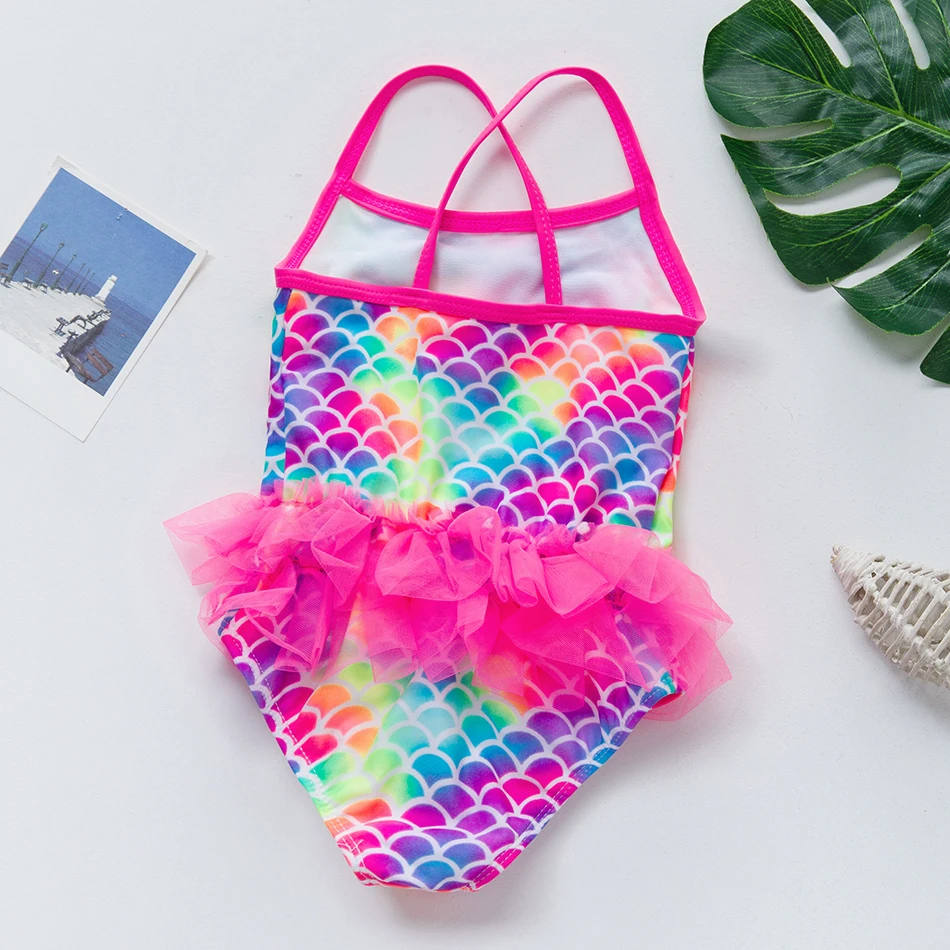 Купальник-пачка с чешуя Русалки; коллекция 2019 года; цельный купальный костюм для девочек; купальные костюмы; пляжный купальник для маленьких девочек