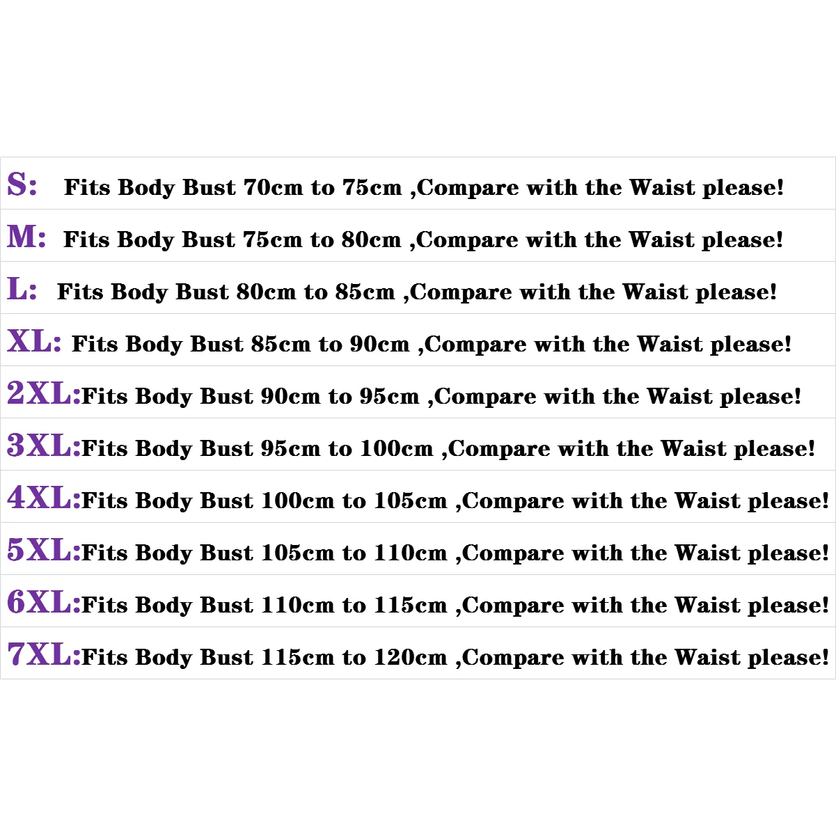 SizeS M L XL 2XL 3XL 4XL 5XL 6XL 7XL