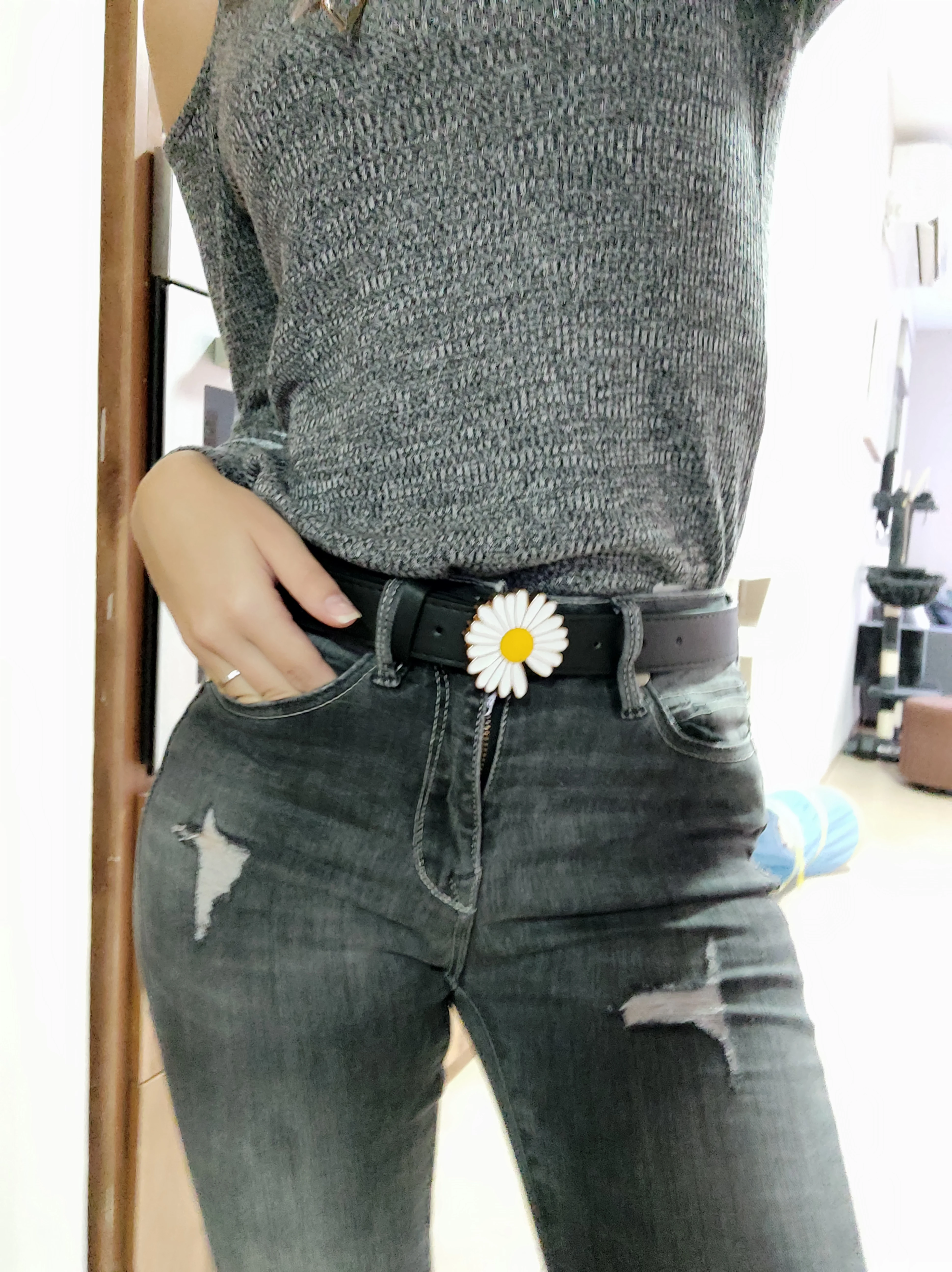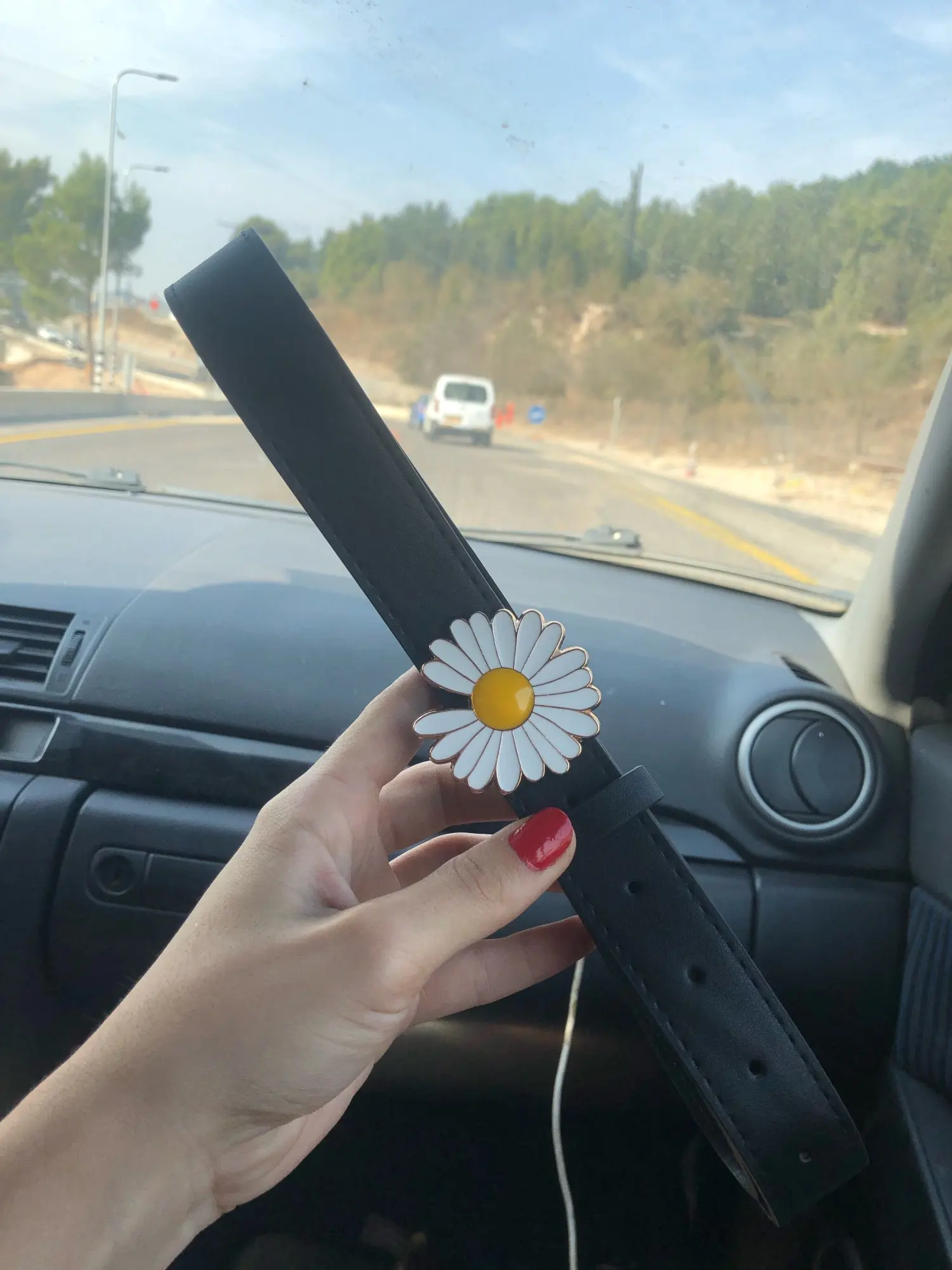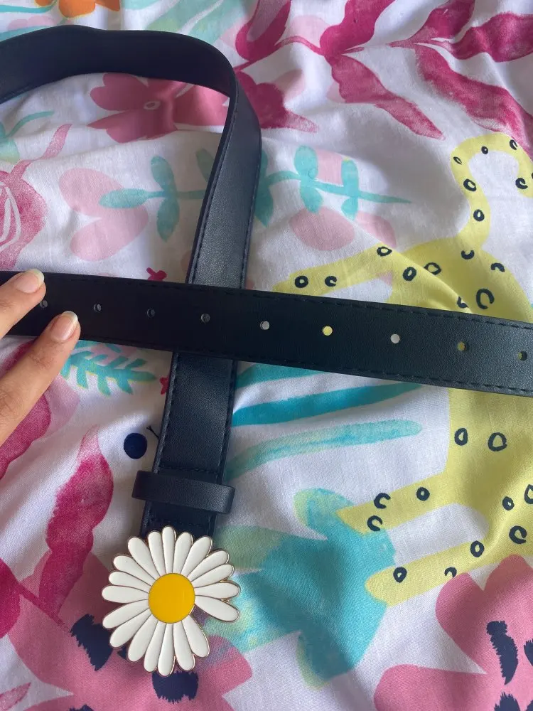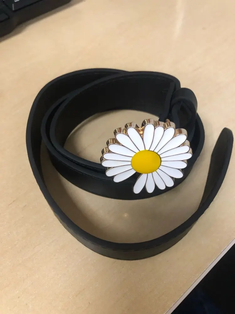 Ремень шел около двух недель. качественная ромашка и сам ремень. очень стильно смотрится.