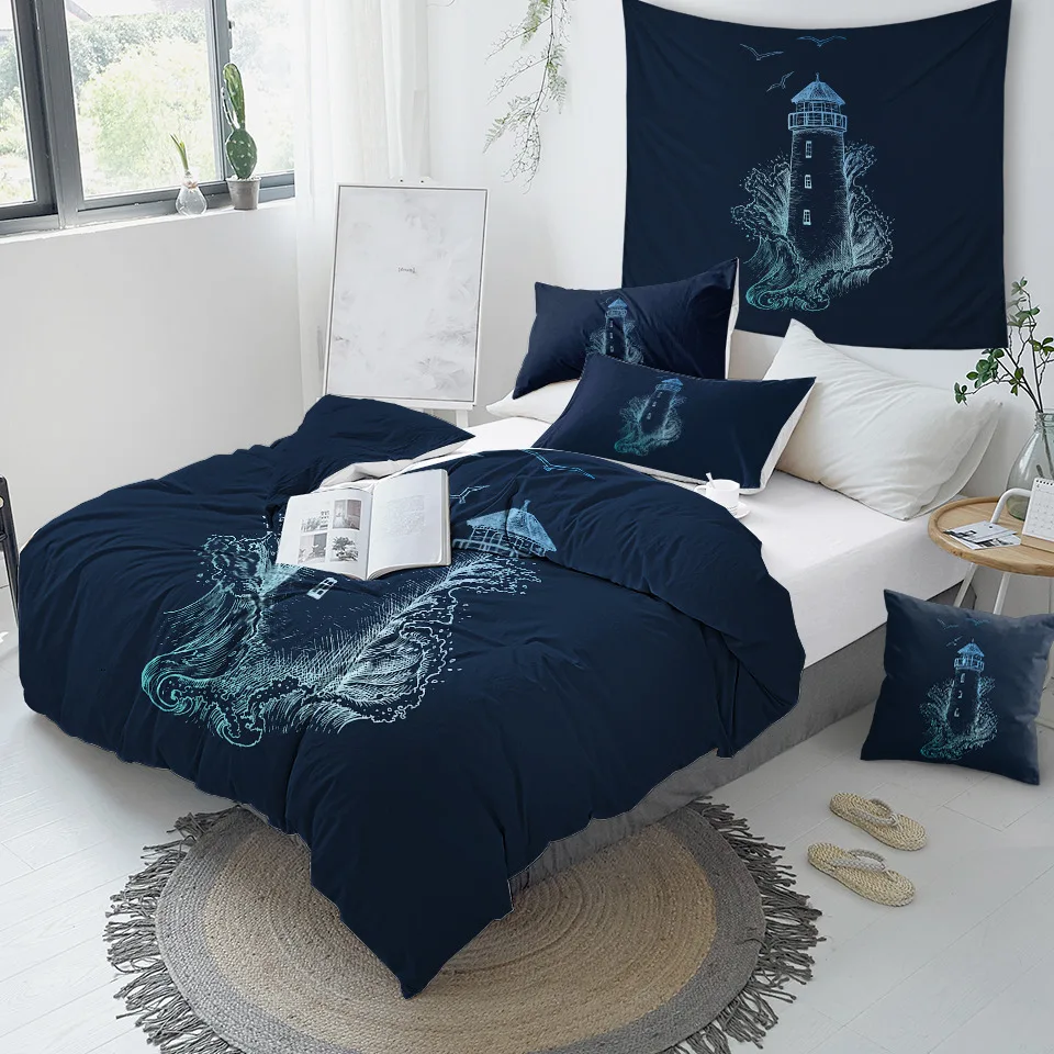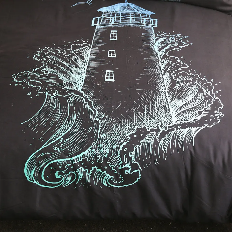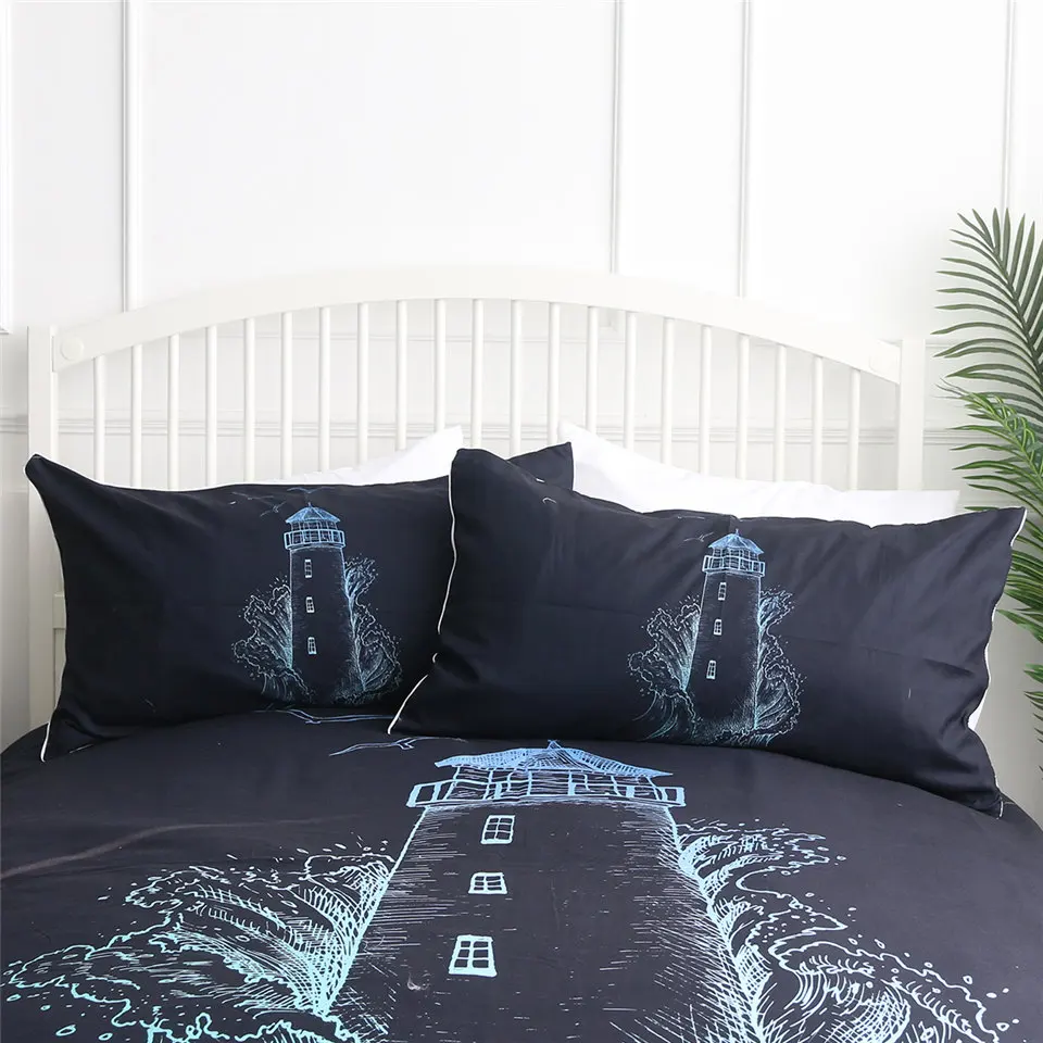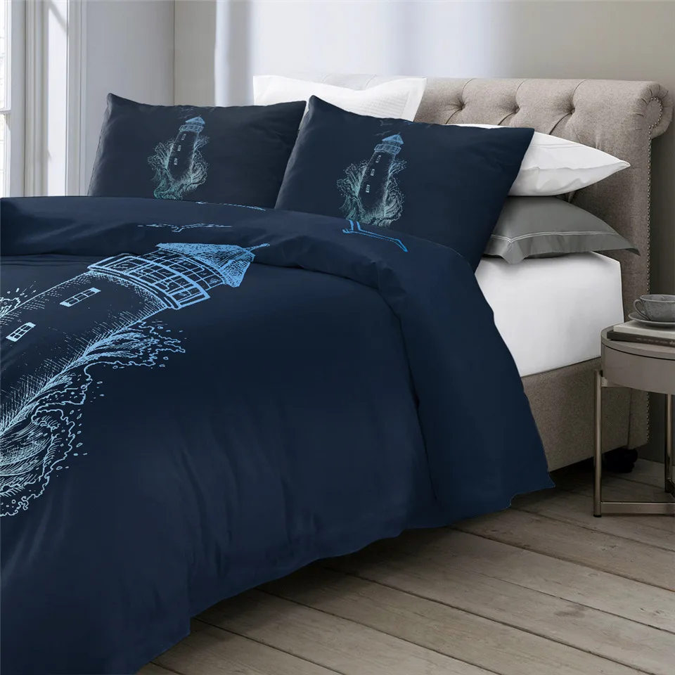 Комплект постельного белья BeddingOutlet с изображением маяков, пододеяльник в морском стиле, постельное белье в виде шторма, 3 предмета, темно-синий цвет, морской тематика, домашний текстиль, Прямая поставка