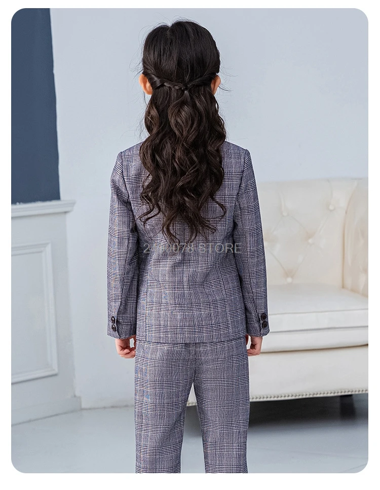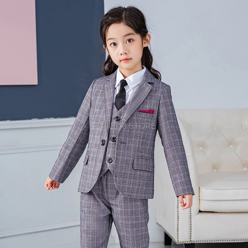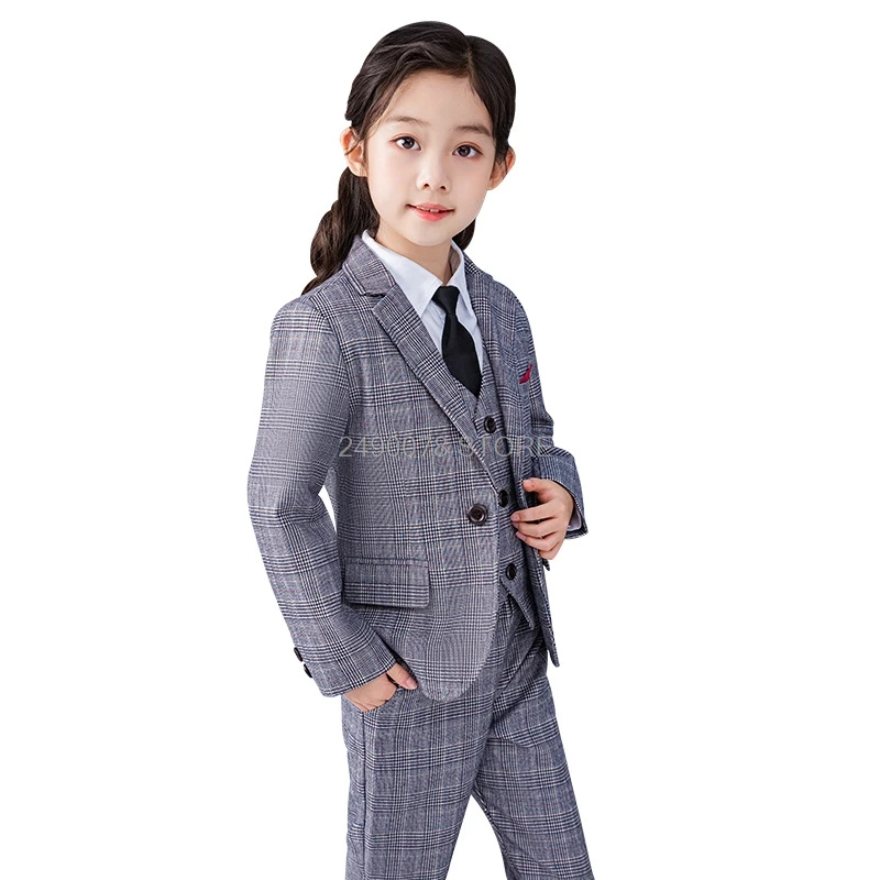 Брендовый Свадебный Детский костюм для девочек, Официальный пиджак, жилет, штаны, галстук, комплект из 4 предметов, блейзер для подростков, комплект одежды в клетку для детей 2-12 лет