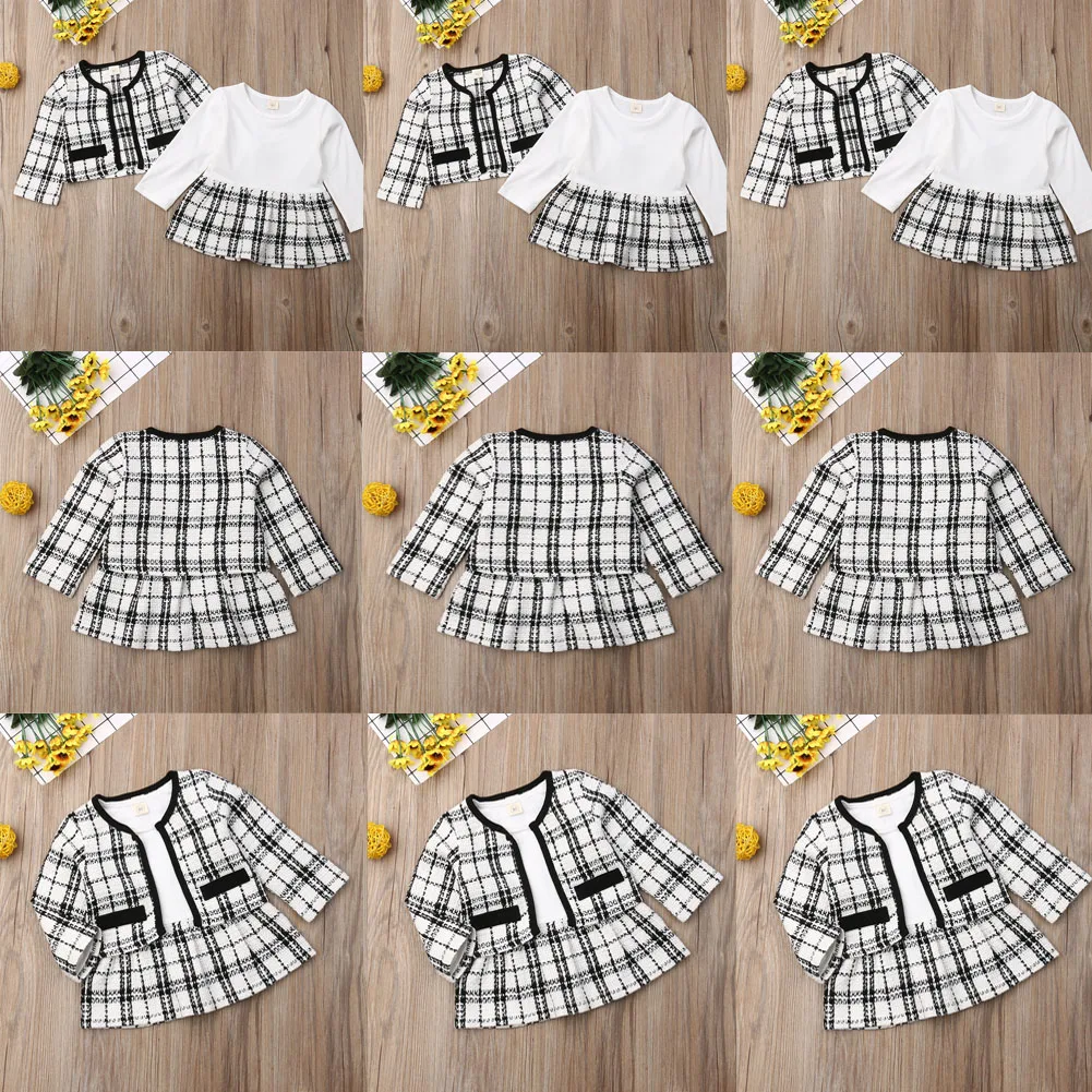 Зимняя одежда для маленьких девочек, клетчатое пальто, Топы + платье-пачка, официальные наряды
