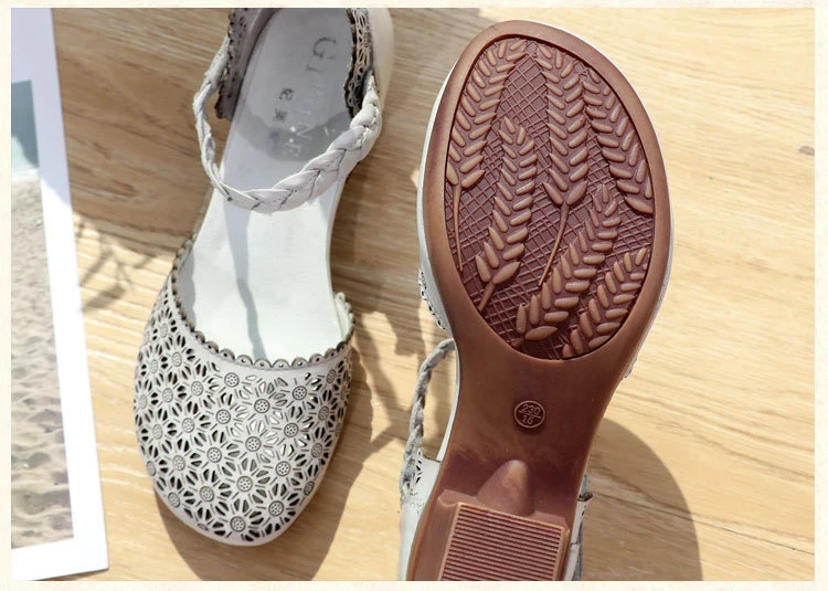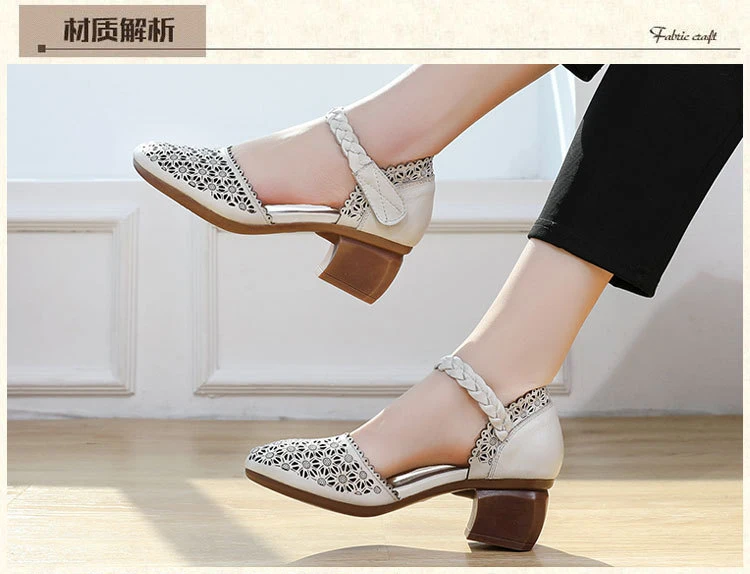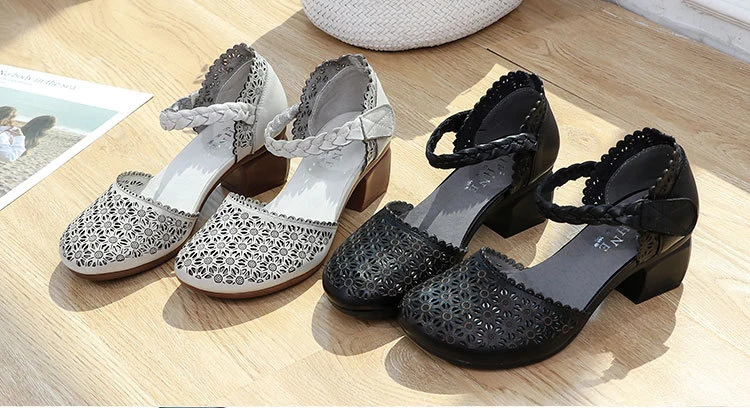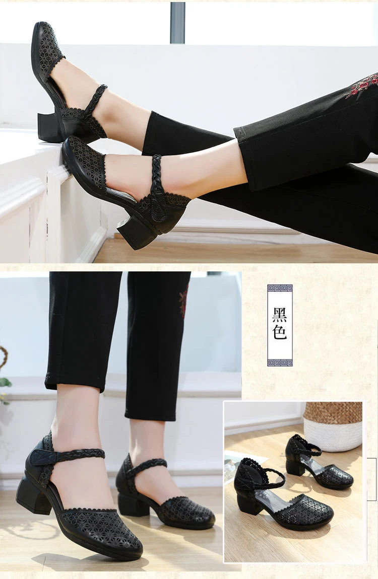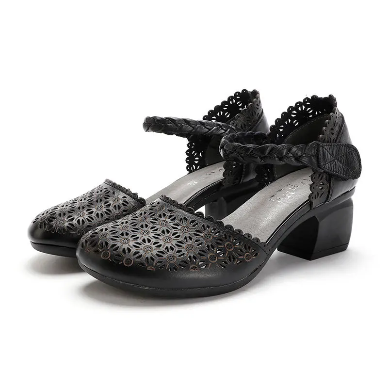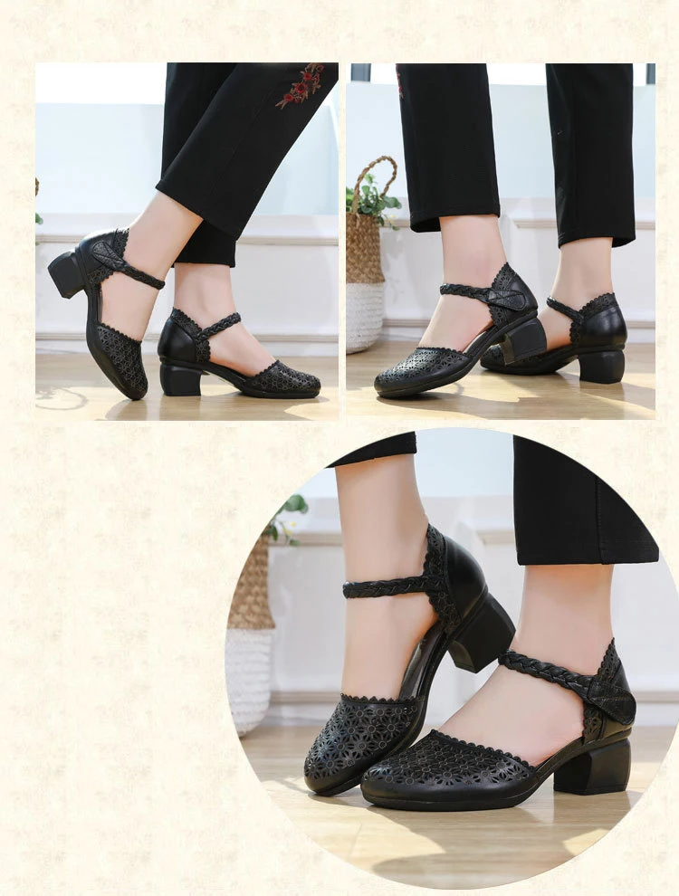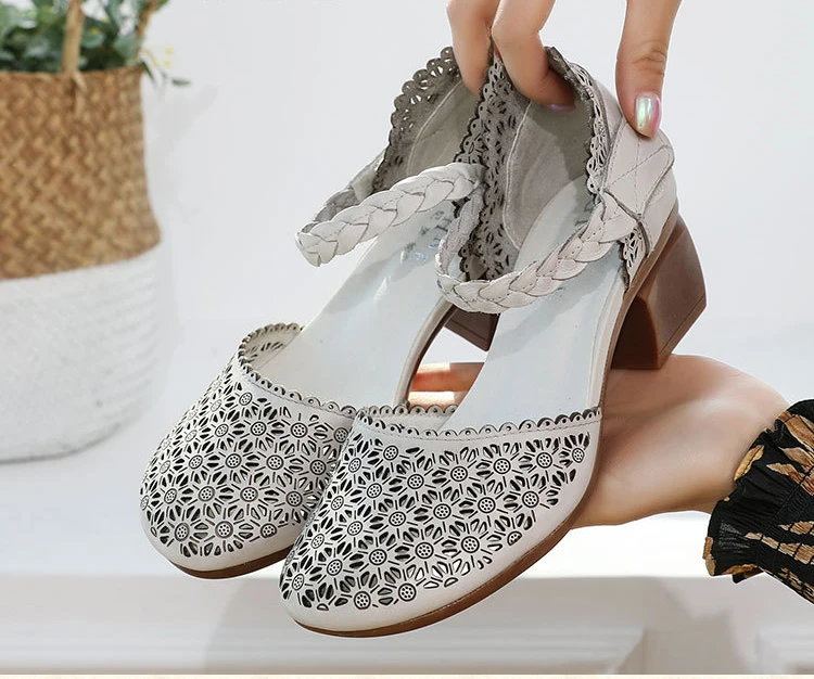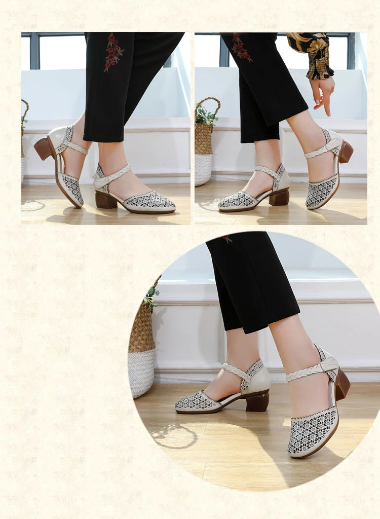 Сандалии женские в ретро-стиле, дышащие босоножки с вырезами, повседневная обувь из натуральной кожи, римские сандалии на толстом каблуке