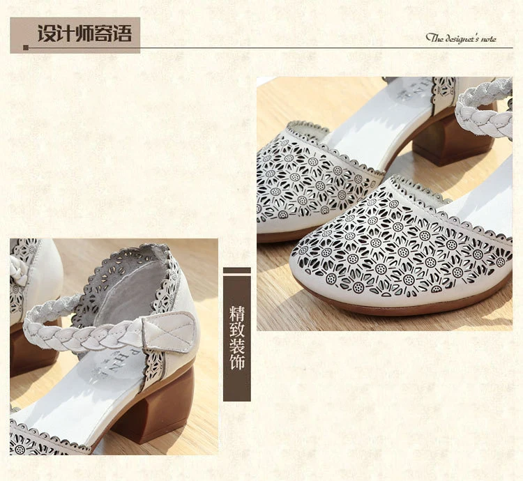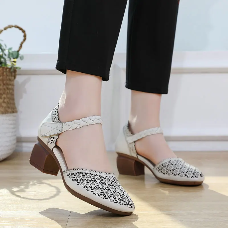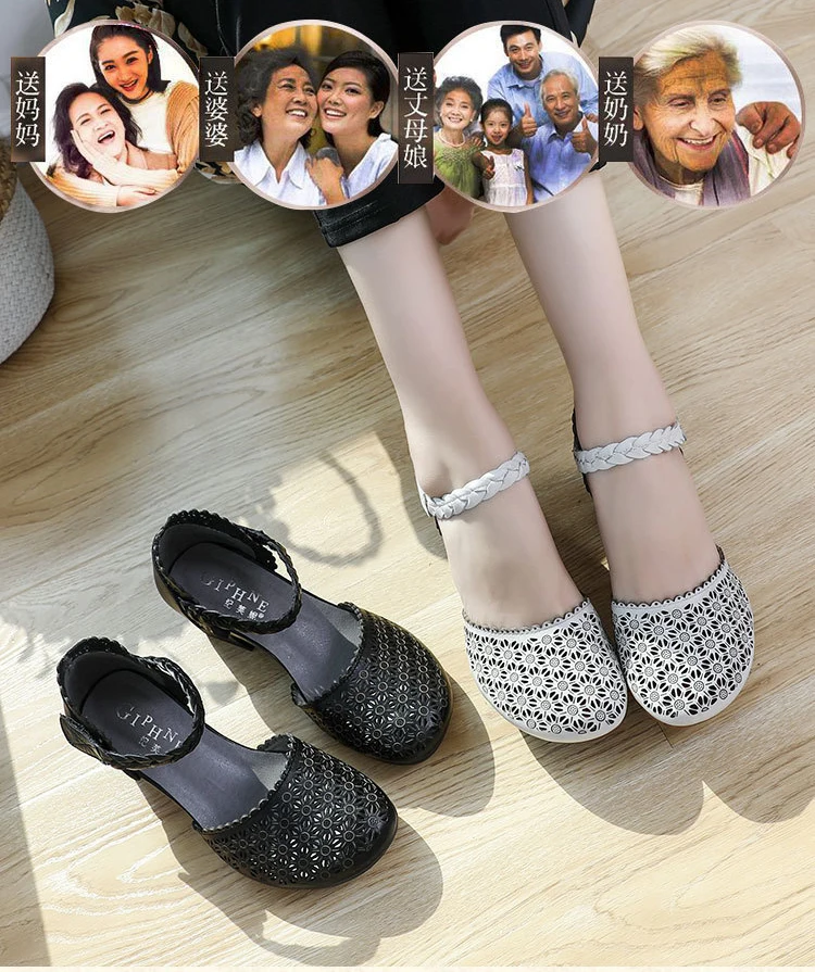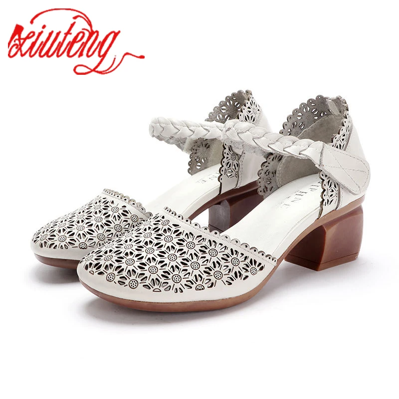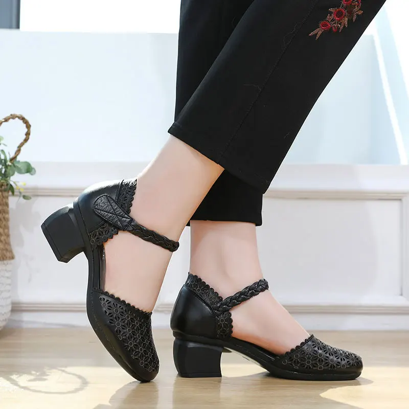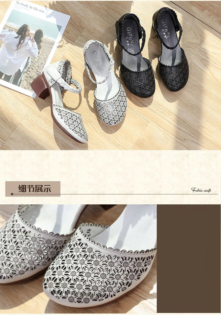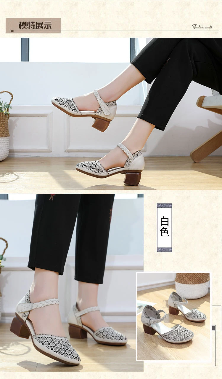 Сандалии женские в ретро-стиле, дышащие босоножки с вырезами, повседневная обувь из натуральной кожи, римские сандалии на толстом каблуке