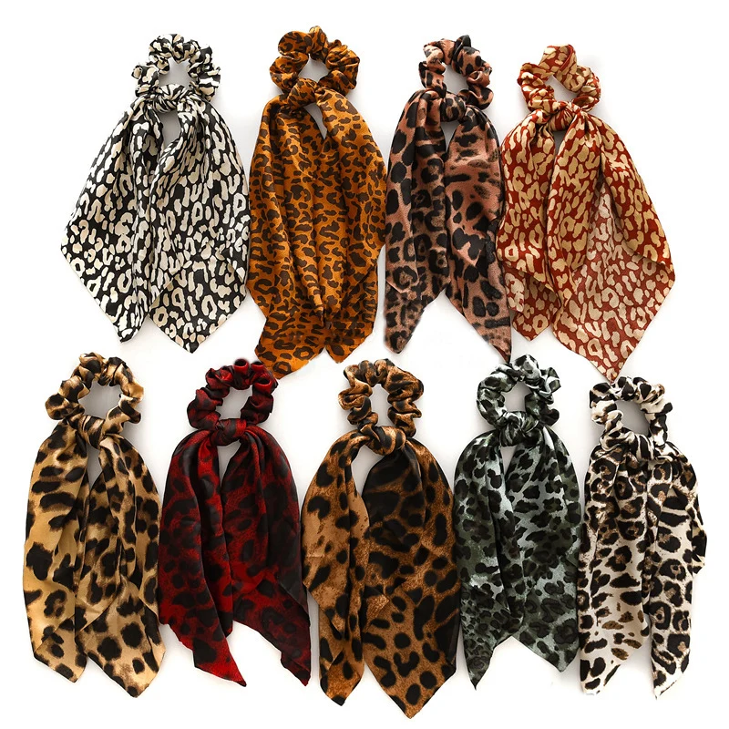 Леопардовый большой бант узелковая веревка для волос длинный стример резинки для женщин Модный Эластичный шарф для волос кольца для волос аксессуары для волос головной убор
