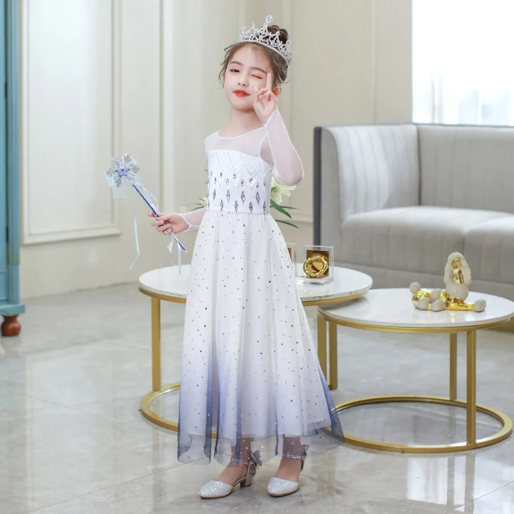 Платье Анны и Эльзы для девочек, белого цвета, Снежная королева, костюм на Хэллоуин, рождественские платья для детей, праздничное платье для малышей