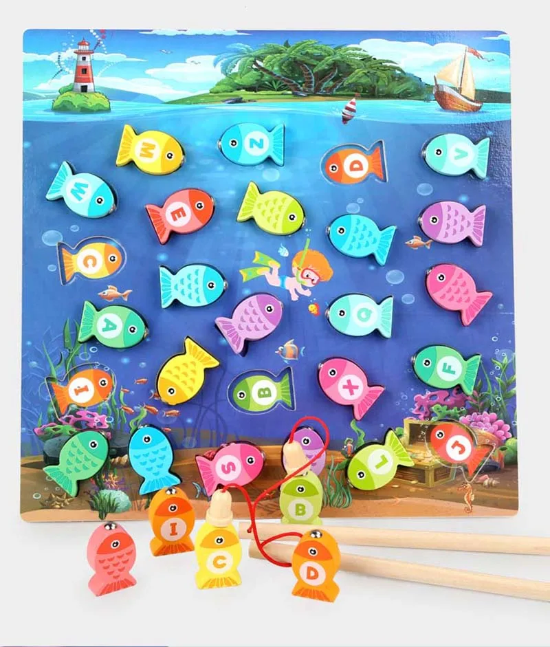 Игрушка Монтессори детская деревянная для рыбалки обучающая буквенн...
