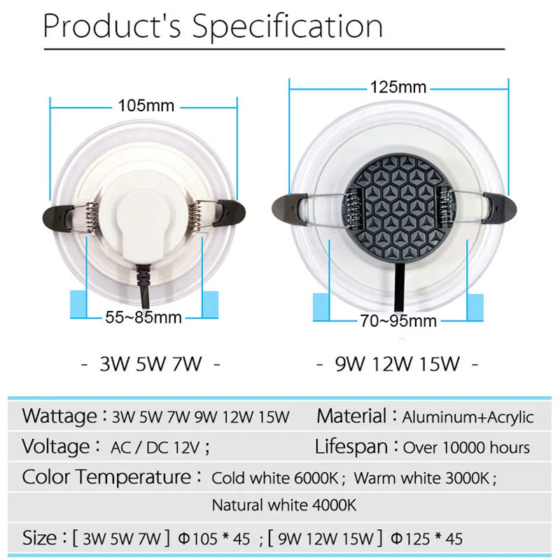 Светодиодный точечный светильник, встраиваемый Точечный светильник с теплым и натуральным светом, 12 В переменного тока, 5 Вт, 7 Вт, 9 Вт, 12 Вт