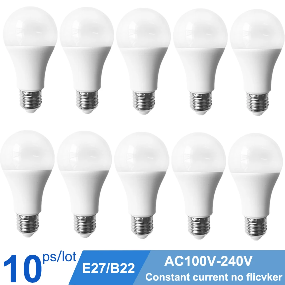Светодиодные лампы E27 B22, 10 шт.лот, светодиодные светильники, лампа для спальни, светильник для чтения, 3 Вт, 6 Вт, 9 Вт, 12 Вт, 15 Вт, 18 Вт, 220 В переменного тока, в, холодный и теплый белый свет