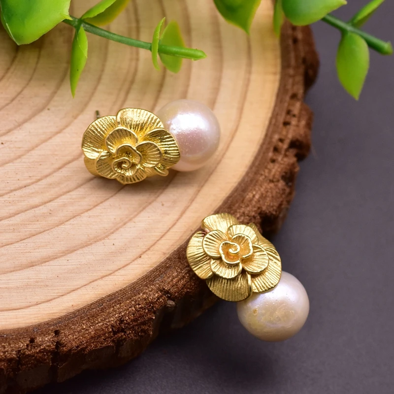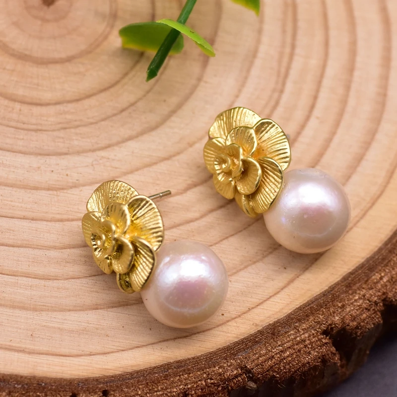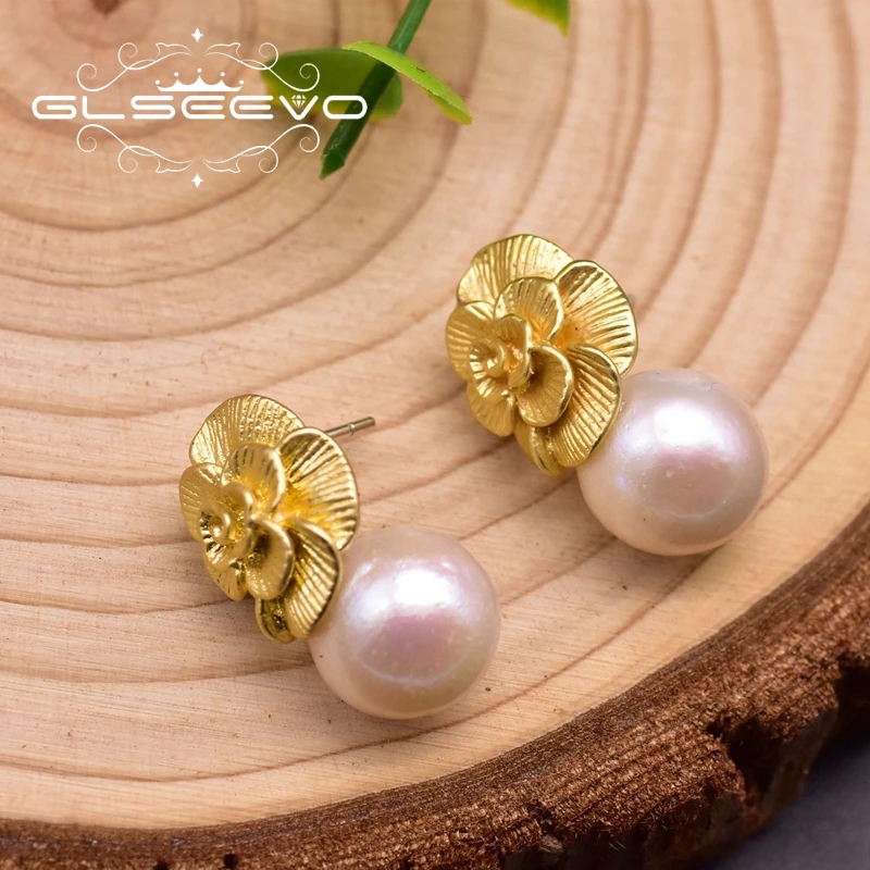 GLSEEVO пресноводные белые жемчужины металлические цветочные Винтажные висячие серьги для женщин юбилей серебро 925 пробы шпильки ювелирные изделия GE0946