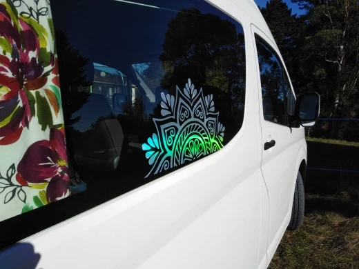 Great product, I love the rainbow effect. Good quality. I'm very happy. The decals look good from both sides of the windows in my van. The instructions that came have a couple of words misspelt so a little confusing. Shipping took a long time to New Zealand.