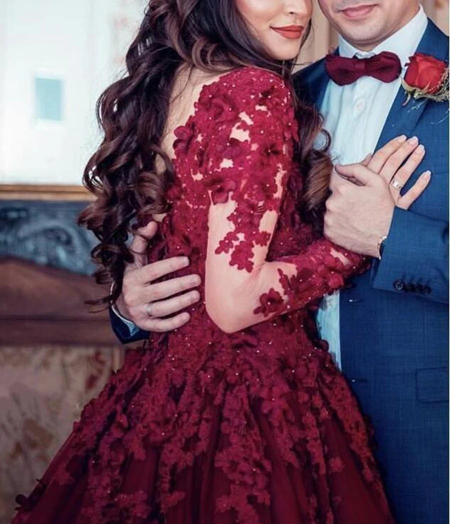 Женское длинное вечернее платье, бордовое кружевное платье с V-образным вырезом и длинным рукавом, украшенное бусинами, 2020