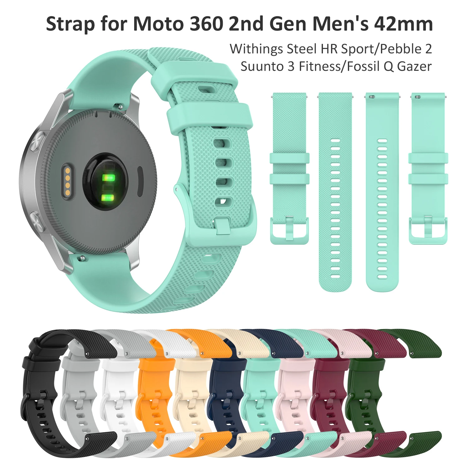 Ремешок для Moto 360 2nd Gen Мужской 42 ммPebble Time Round Suunto 3 Fitness Fossil Q Gazer Withings Steel HR спортивный браслет