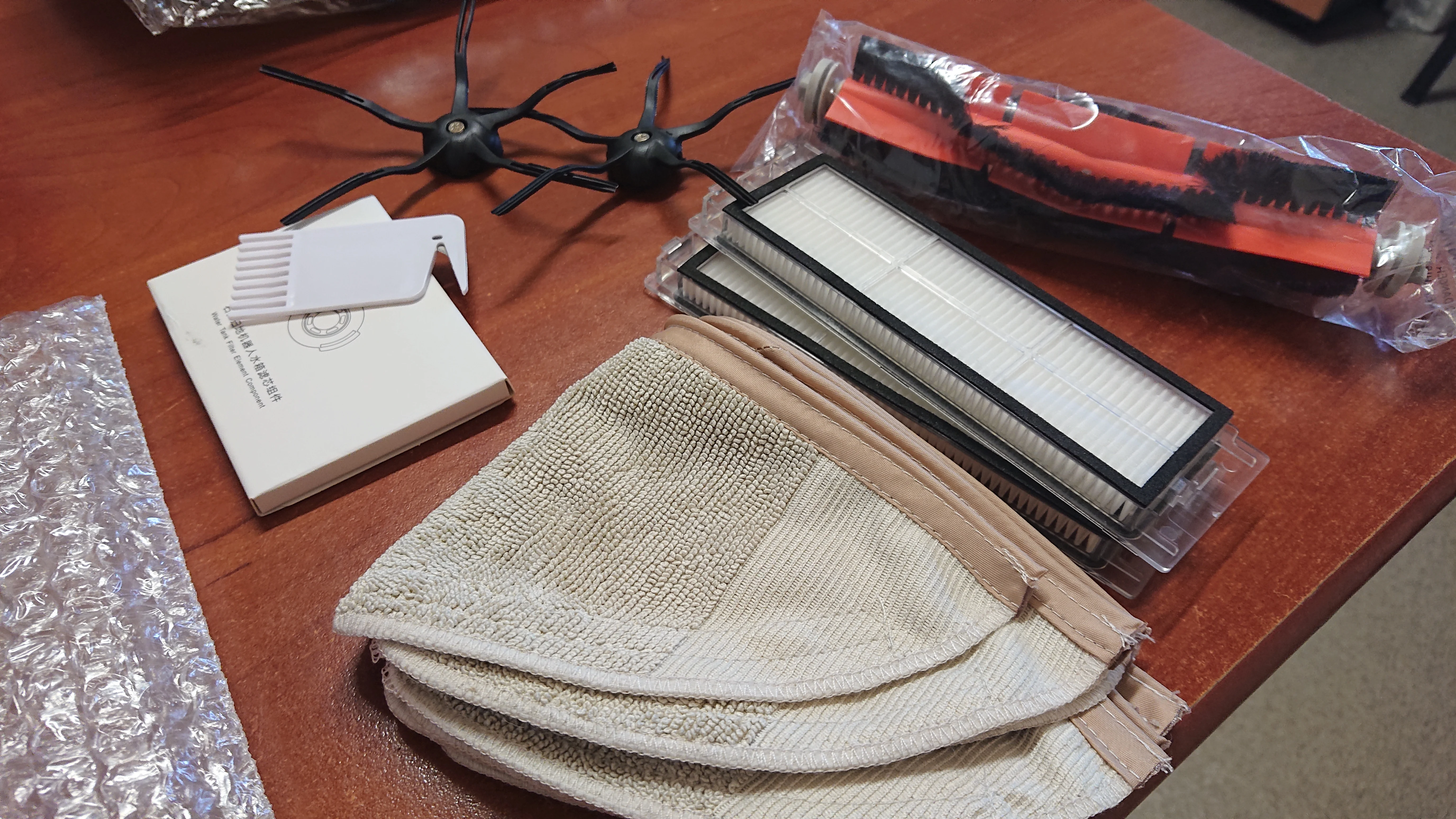 Все детали подошли, тряпочки (более тонкие, чем оргинальные, но подходят), щеточка - точно такая, как в пылесосе, угловые щеточки (они выглядят более хлипкими, чем оригинальные, но соответствуют фото продавца), фильтры (они с сеточкой снаружи, оригинальны у меня без, но тоже подходят). Заказ отправили быстро, пришел за 2,5 недели, в Украину Новой почтой на отделение.