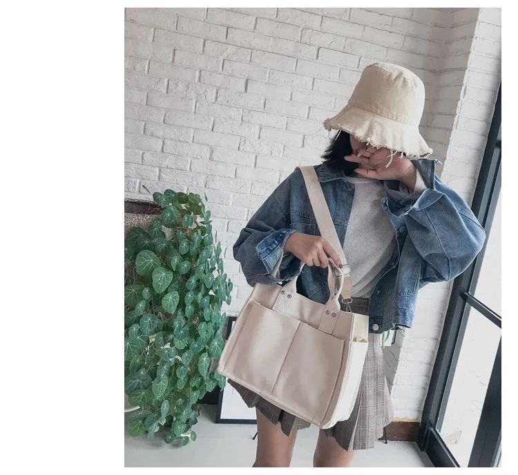 Простая холщовая дамская сумочка с несколькими карманами, мессенджер, вместительный саквояж на плечо для женщин