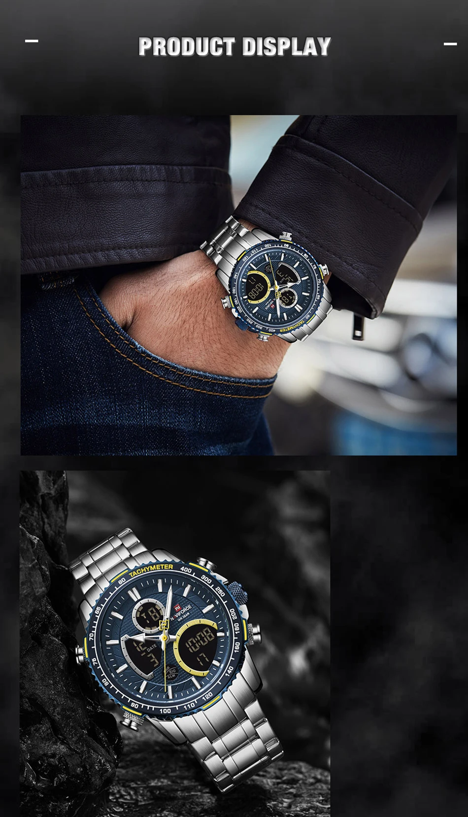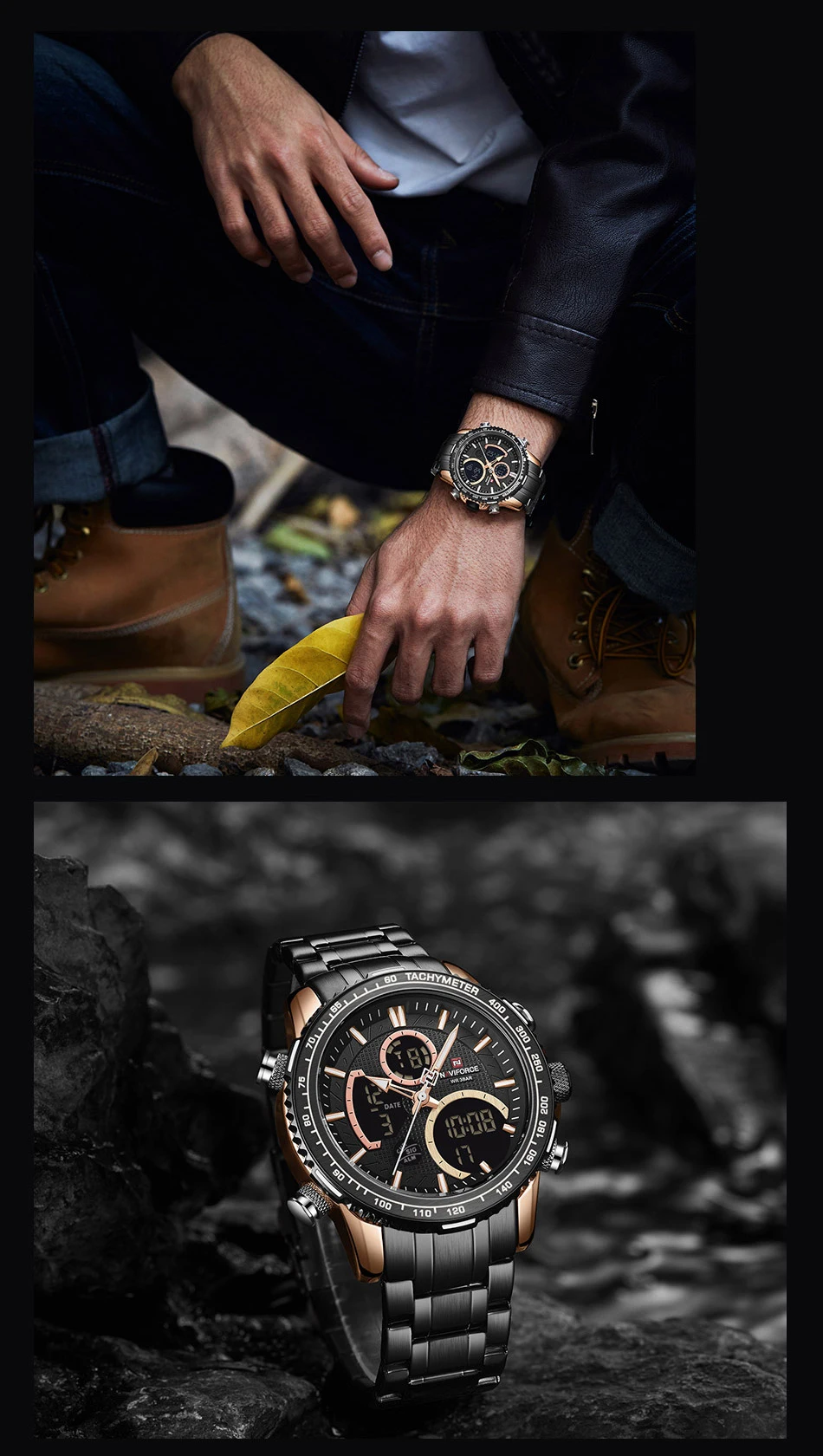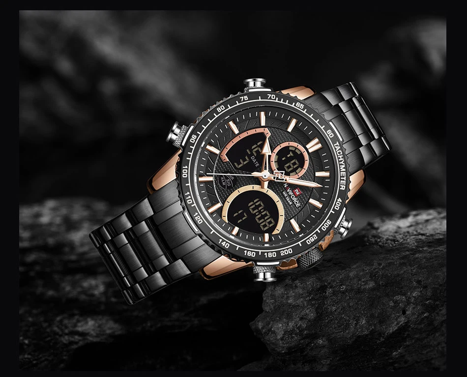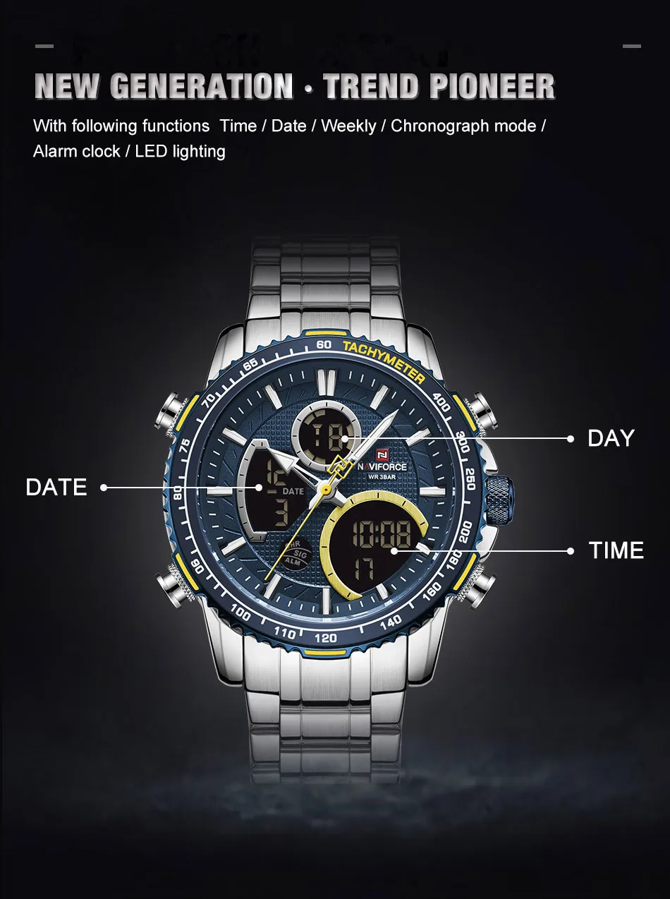 Часы наручные NAVIFORCE Мужские кварцевые, брендовые Роскошные Аналоговые спортивные светодиодные цифровые в стиле милитари, с хронографом