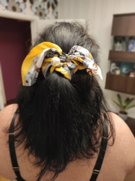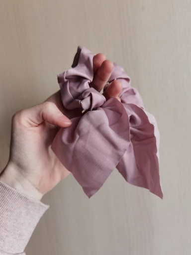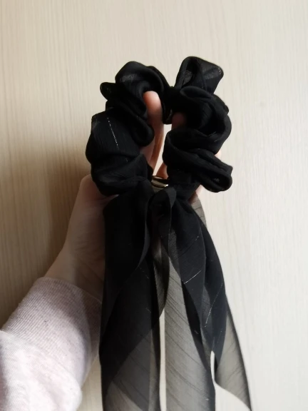 Очень красивая и нежная резинка, волосы держит хорошо на 3 оборота. Из-за ленточек немного неудобно завязывать, но очень красиво на волосах. Советую.