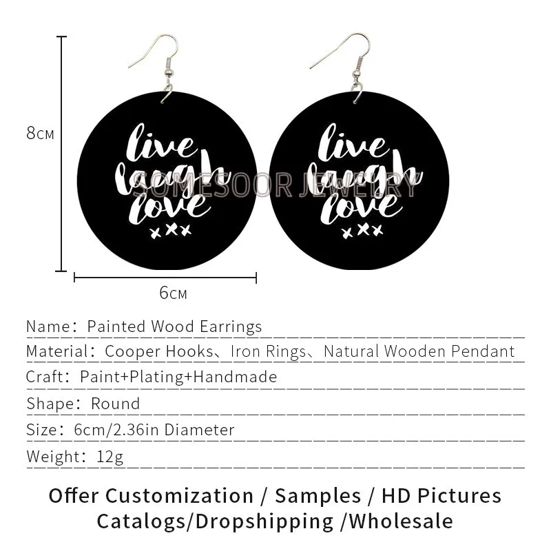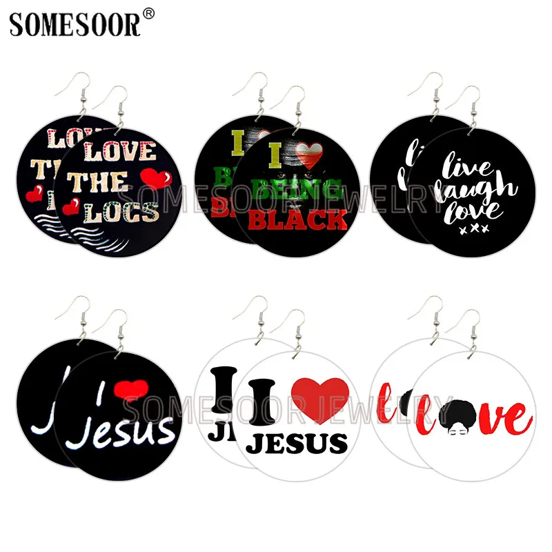 SOMESOOR черные, любовь, Иисус, Locs, деревянные серьги-капли, смех, живые высказывания, печатные деревянные круглые петли для женщин, подарки