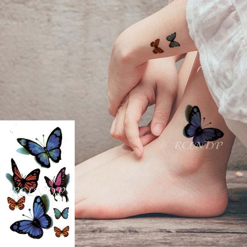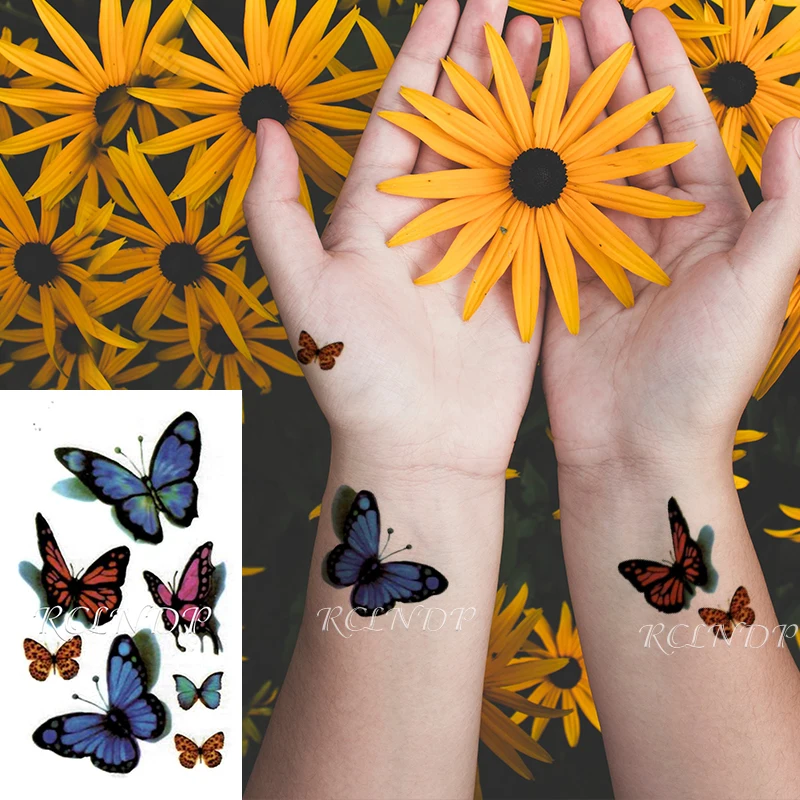 Водостойкие временные тату-наклейки, 3D Цветные тату-бабочки, насекомые, животные, фальшивое тату, тату боди-арт для девочек, мужчин, детей