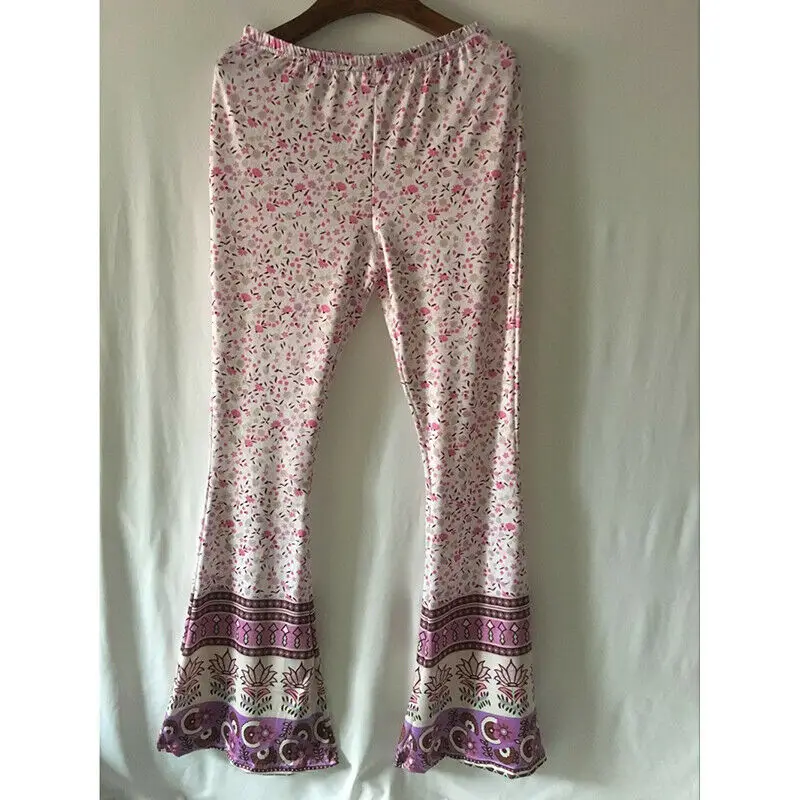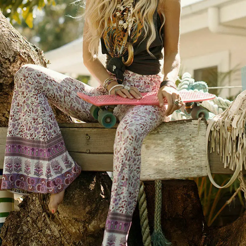 Брюки женские с широкими штанинами, модные повседневные свободные Мягкие штаны в стиле бохо, хиппи, с завышенной талией, клеш-колокол, пляжная одежда с принтом, домашняя одежда
