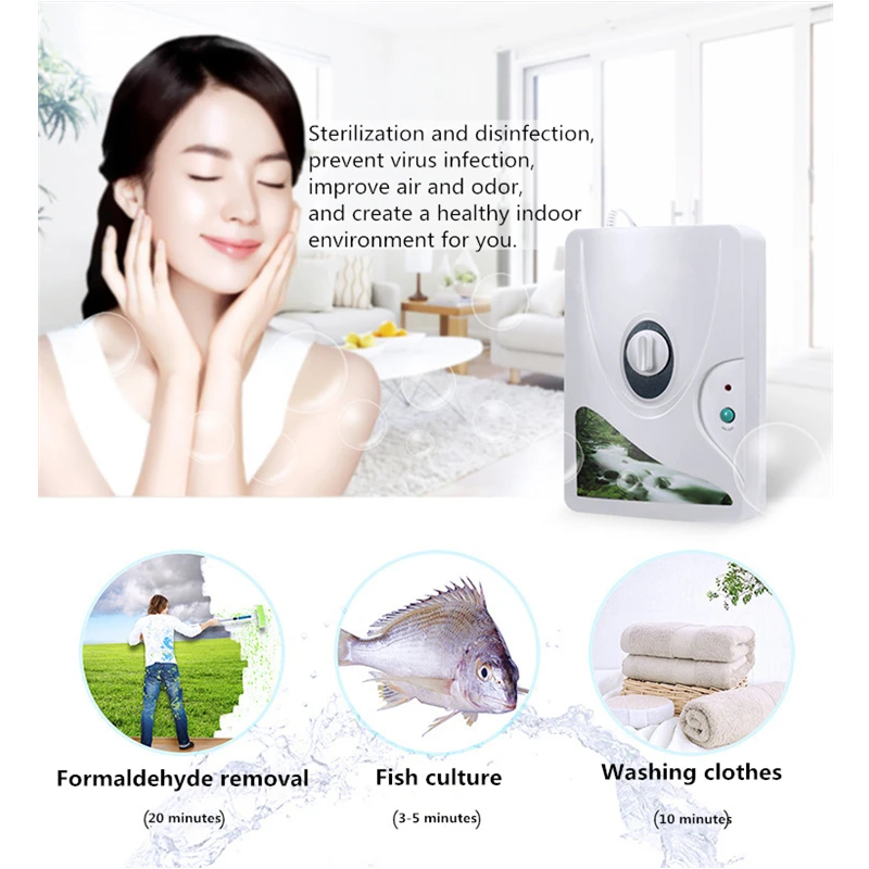 * Генератор озона поставляется со всем необходимым для удаления запахов, уничтожения вирусов, бактерий и плесени, даже для очистки питьевой воды.* Озоновая вода обладает широким спектром использования: сельское хозяйство химическое детоксикация для фруктов и овощей, защита кожи и красоты, дезодорирование и отбеливание, чистка зубов, терапевтическая медицинская помощь,* Увеличьте Озон в рыбий банке и очистите воду воздушной трубкой, делая воздух чистым в комнате без трубки.* Портативный, может быть транспортирован и использован из одной комнаты в другую.* Простой светодиодный дисплей, который позволяет легко использовать желаемые настройки.* Номинальная мощность 12 Вт, энергосбережение и длительный срок годности.* Работает естественным образом, без каких-либо химических веществ.
