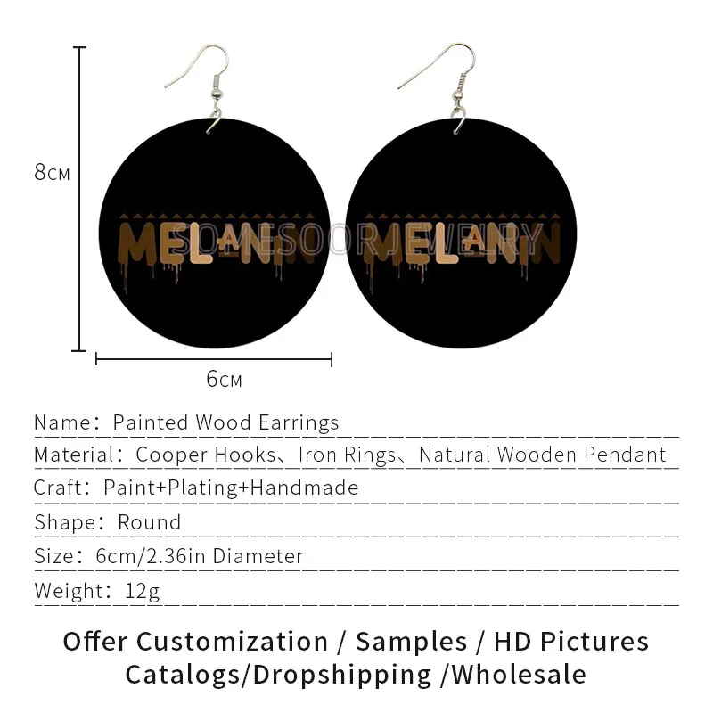 Деревянные серьги-подвески SOMESOOR, с изображением меланина, женск...