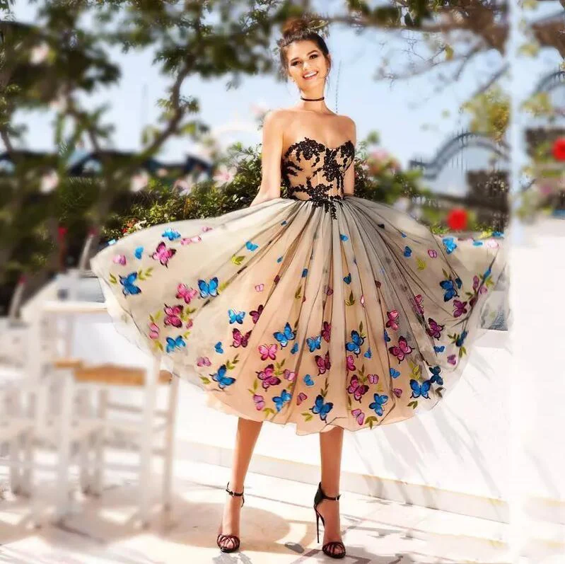 Новинка 2020, модное вечернее платье, бальное платье с красочными бабочками, милое кружевное вечернее платье с лямкой на шее