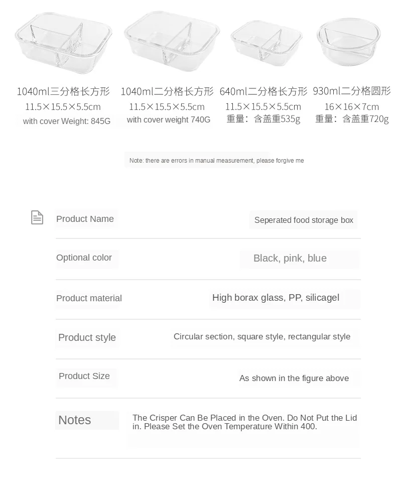 1. Идеальный стеклянный контейнер для приготовления еды-Встроенные разделители позволяют отделить еду от пищи для приготовления еды и контроля порций.