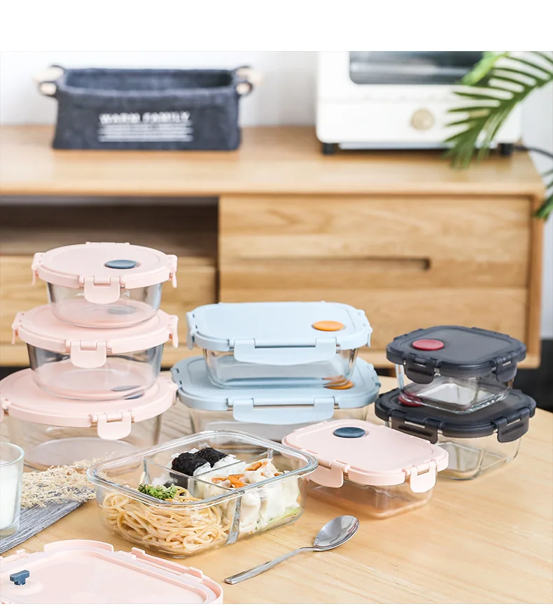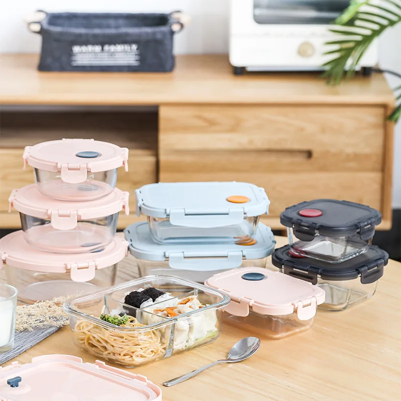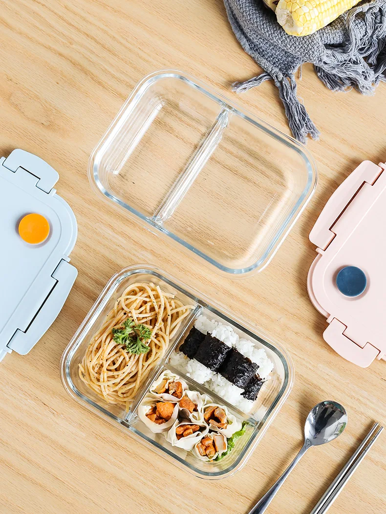 Стеклянный Ланч-бокс для офиса, Детские Контейнеры для готовой еды, бэнто-бокс для микроволновой печи с отсеком, экологичный пищевой контейнер герметичные емкости для хранения продуктов