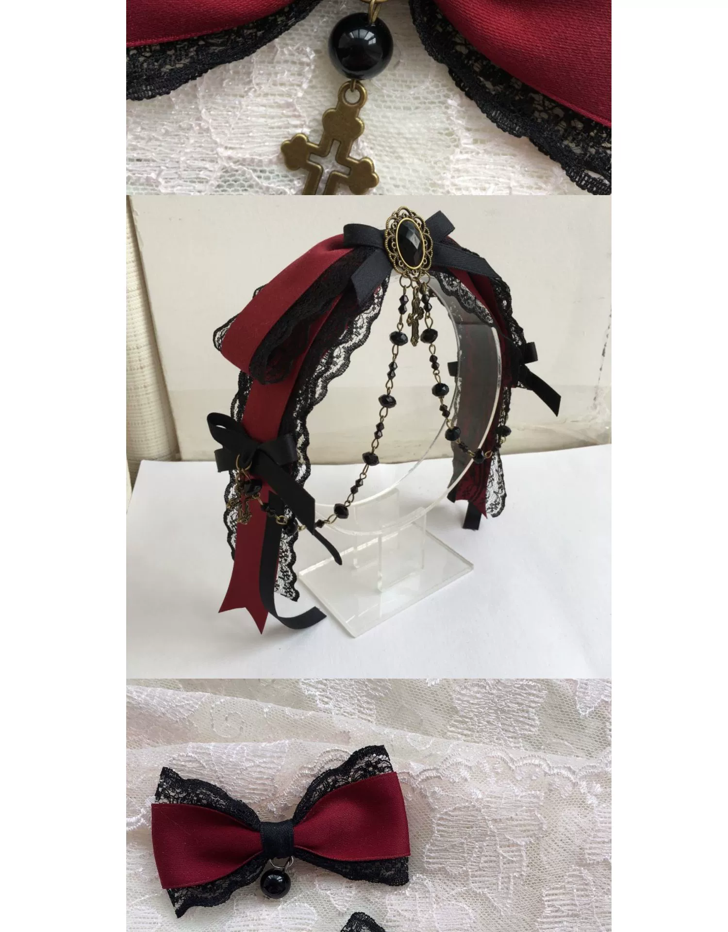 Женская повязка на голову Chateau night, заколка в Стиле Лолита повязка на голову ручной работы из серии бордового, темно-черного цветов, готические украшения для волос