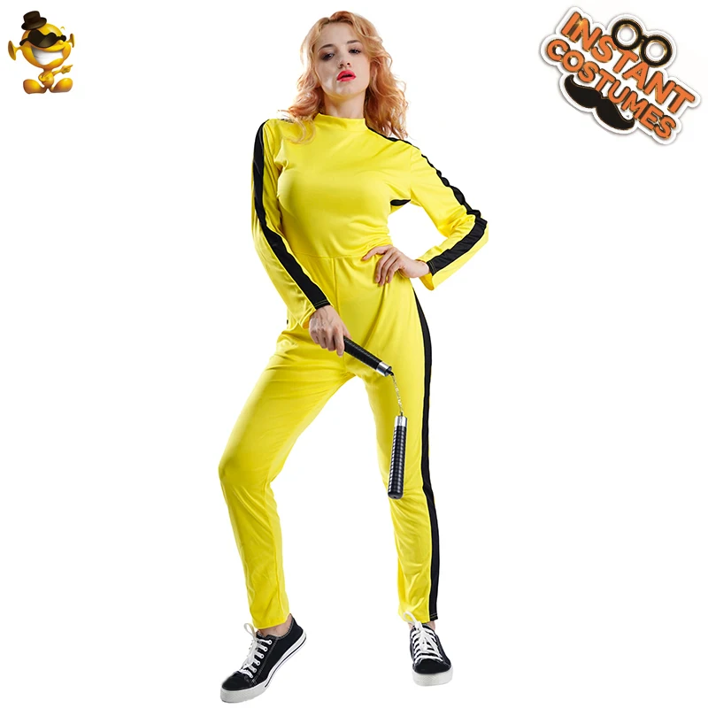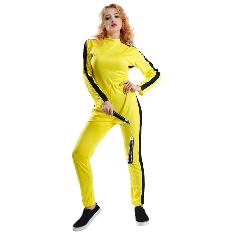 Женский комбинезон Kongfu Kill, нарядное платье, желтое платье для Хэллоуина, костюм для взрослых, женская одежда