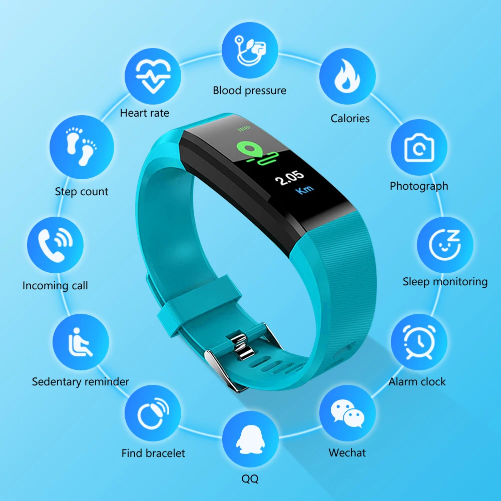 Многофункциональный дизайн, измерение крови, спортивный счетчик шагов, потребление калорий, расстояние движения, напоминание о входящем звонке, оповещение о информации, информационный сигнал, будильник, поиск браслета, удаленная камера, напоминание о долгом сидении, мониторинг сна.