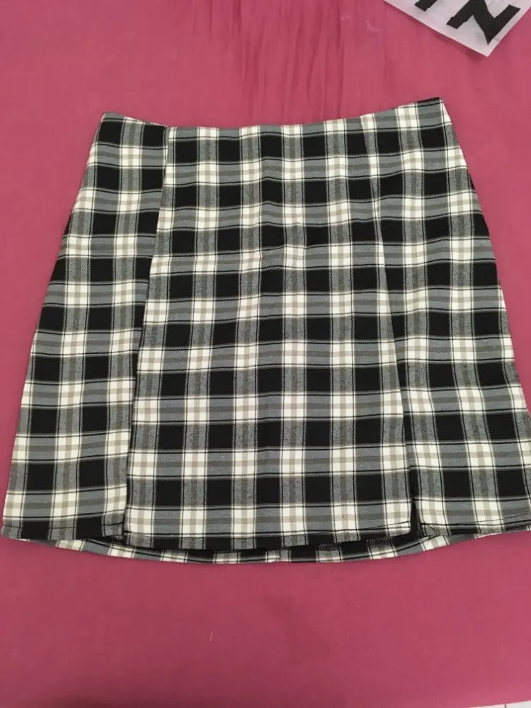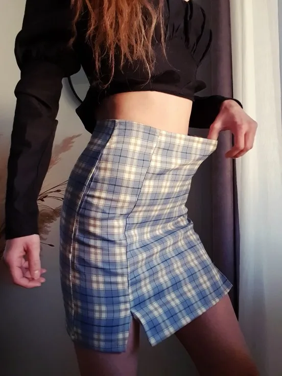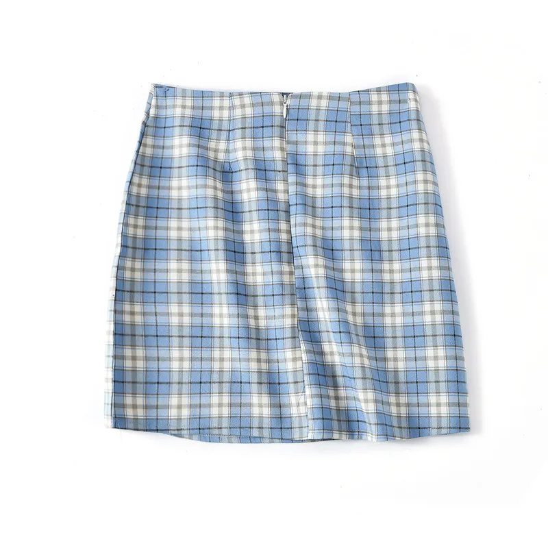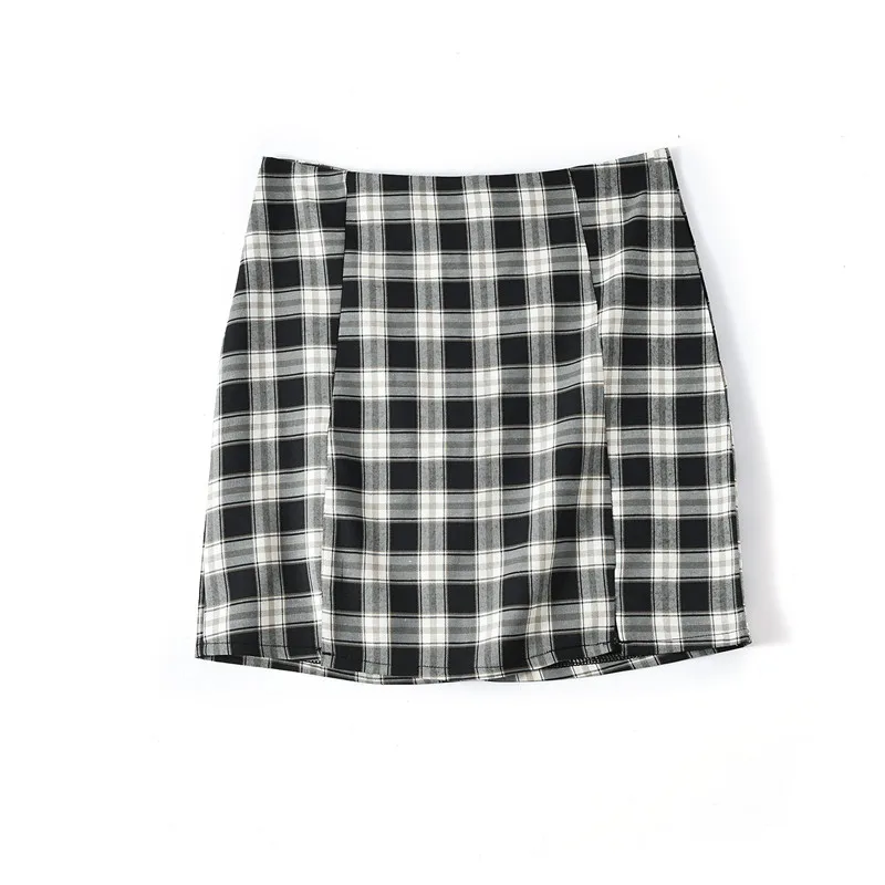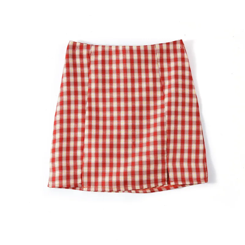 Юбка женская клетчатая, трапециевидная, с высокой талией, с разрезом, в уличном стиле, 2021