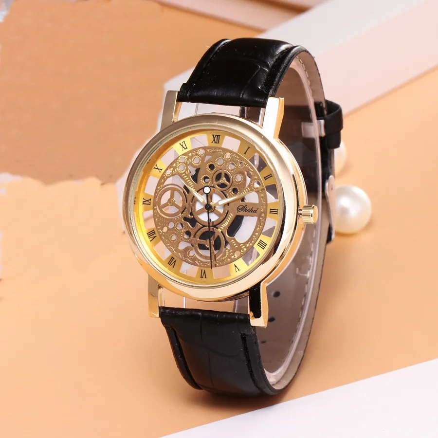 Модные часы с кожаным ремешком, классические черные полые часы с циферблатом для мужчин и женщин, роскошные часы, повседневные кварцевые часы 2020 orologio