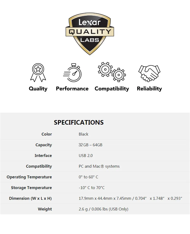 USB-флеш-накопитель Lexar JumpDrive V40, 3264 ГБ, USB 2,0