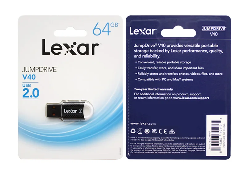 Оригинальный Lexar Jumpdrive V40, USB 2,0, карта памяти 32 ГБ, 64 Г...