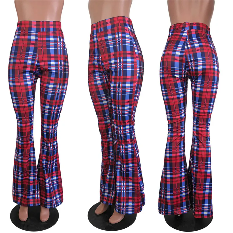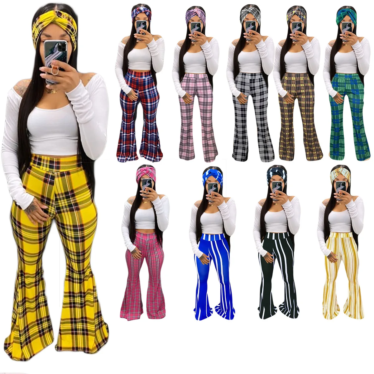Женские клетчатые расклешенные брюки с высокой талией и принтом, 2020