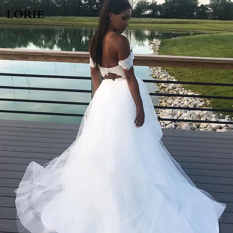 Платье свадебное кружевное ТРАПЕЦИЕВИДНОЕ с открытыми плечами и аппликацией, 2020