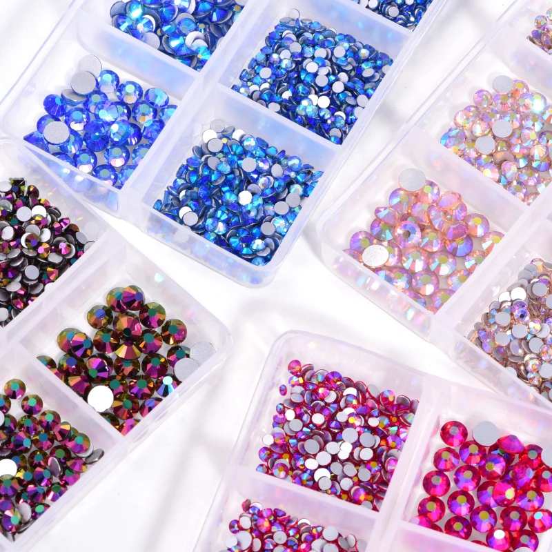 1200 шт.кор. 24 AB мерцающих цветов смешанные размеры Flatback Non Hot Fix Strass для дизайна ногтей F0227