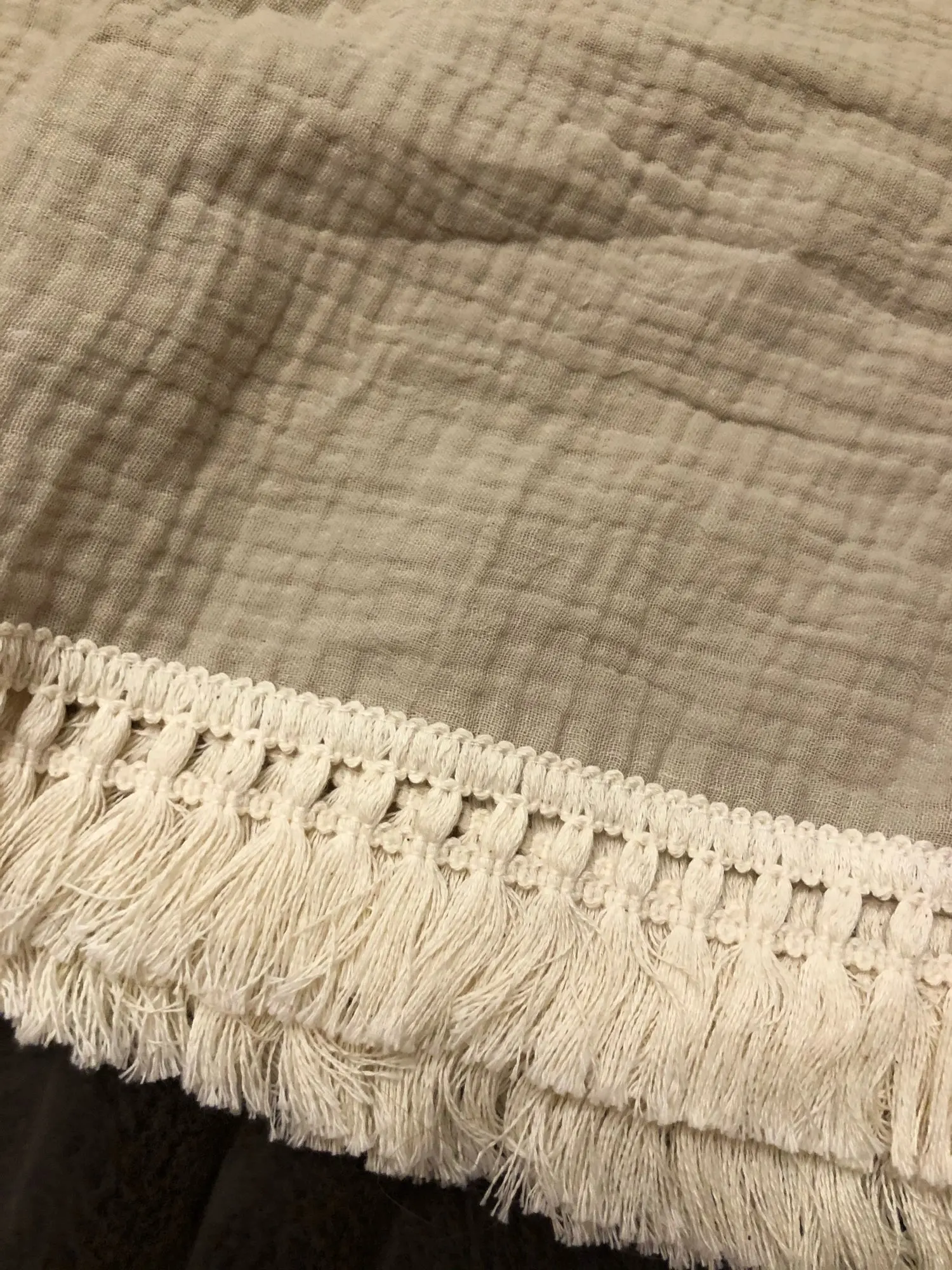 Красивое качество и красивая стирка. Хорошо держит свой размер. Кисточки также не соскальзывают при стирке.