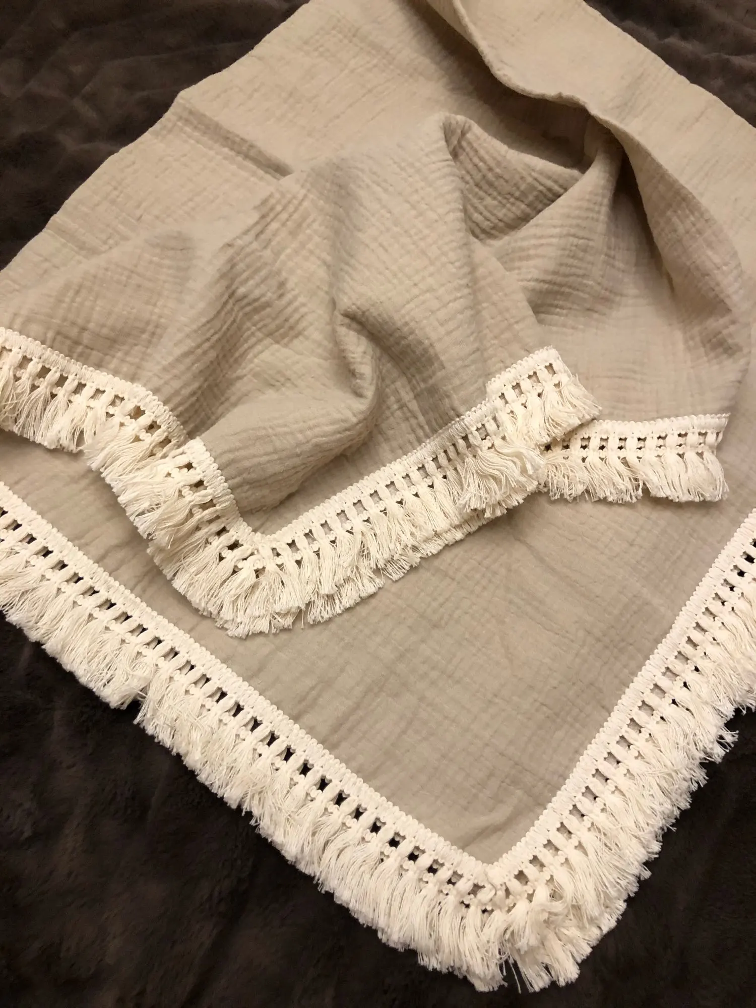 Пеленка унисекс для новорожденных, однотонное детское одеяло с кисточками, Пеленальное Одеяло