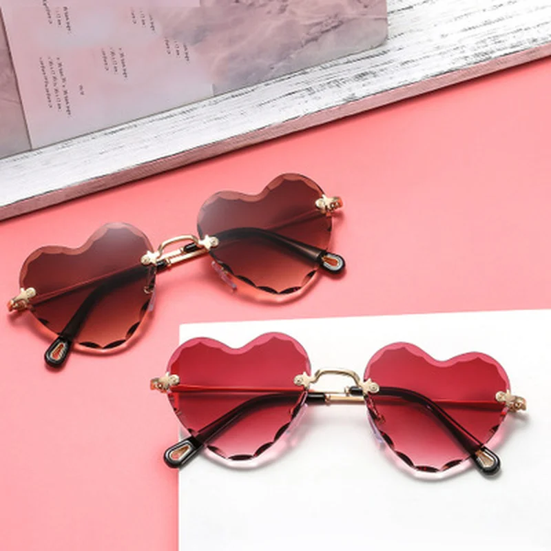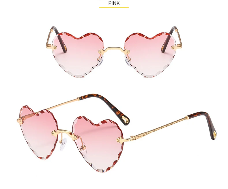 Женские солнцезащитные очки без оправы Love Heart, прозрачные цветные солнцезащитные очки с толстыми краями в стиле ретро кошачий глаз, винтажные женские солнцезащитные очки UV400