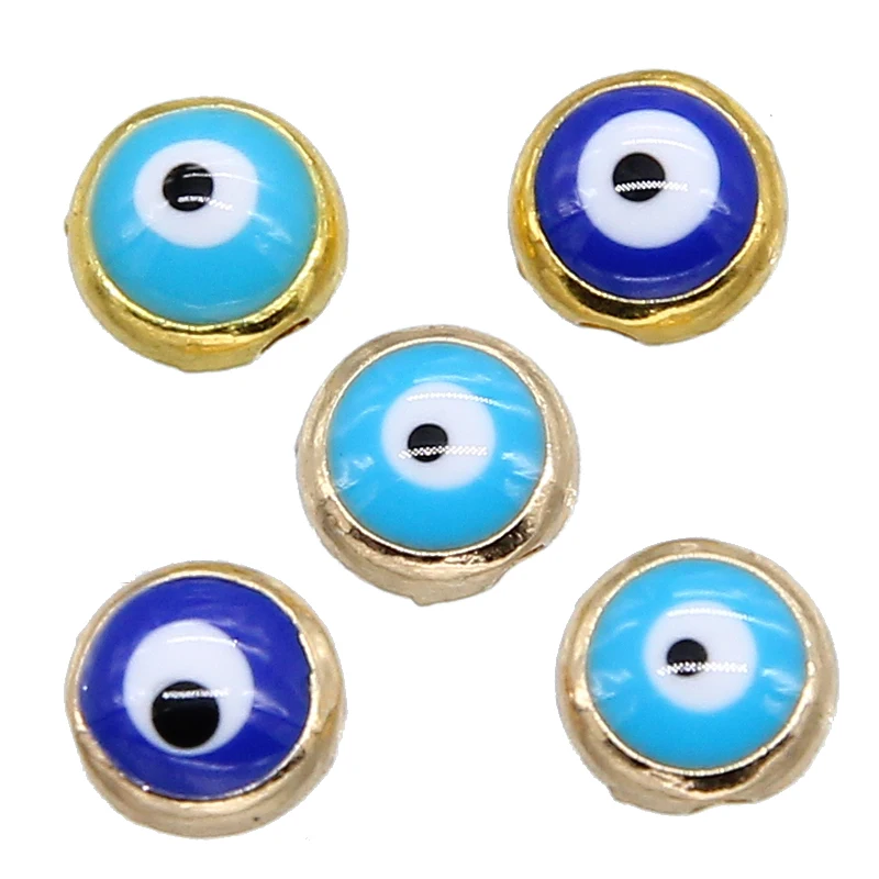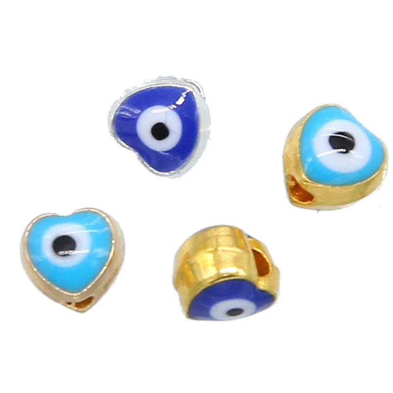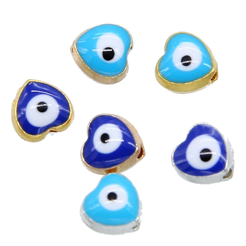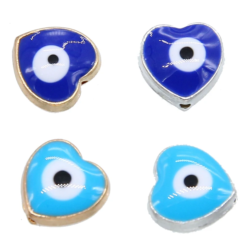 Круглые синие Бусины в форме сердца, плоские наборные бусины, волшебный глаз, в полоску, металлические, для ювелирных изделий, 6 мм, 8 мм, 10 мм, 12 мм