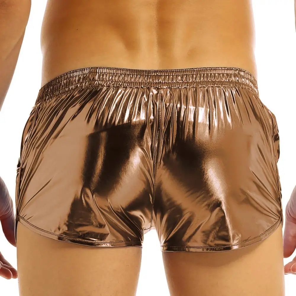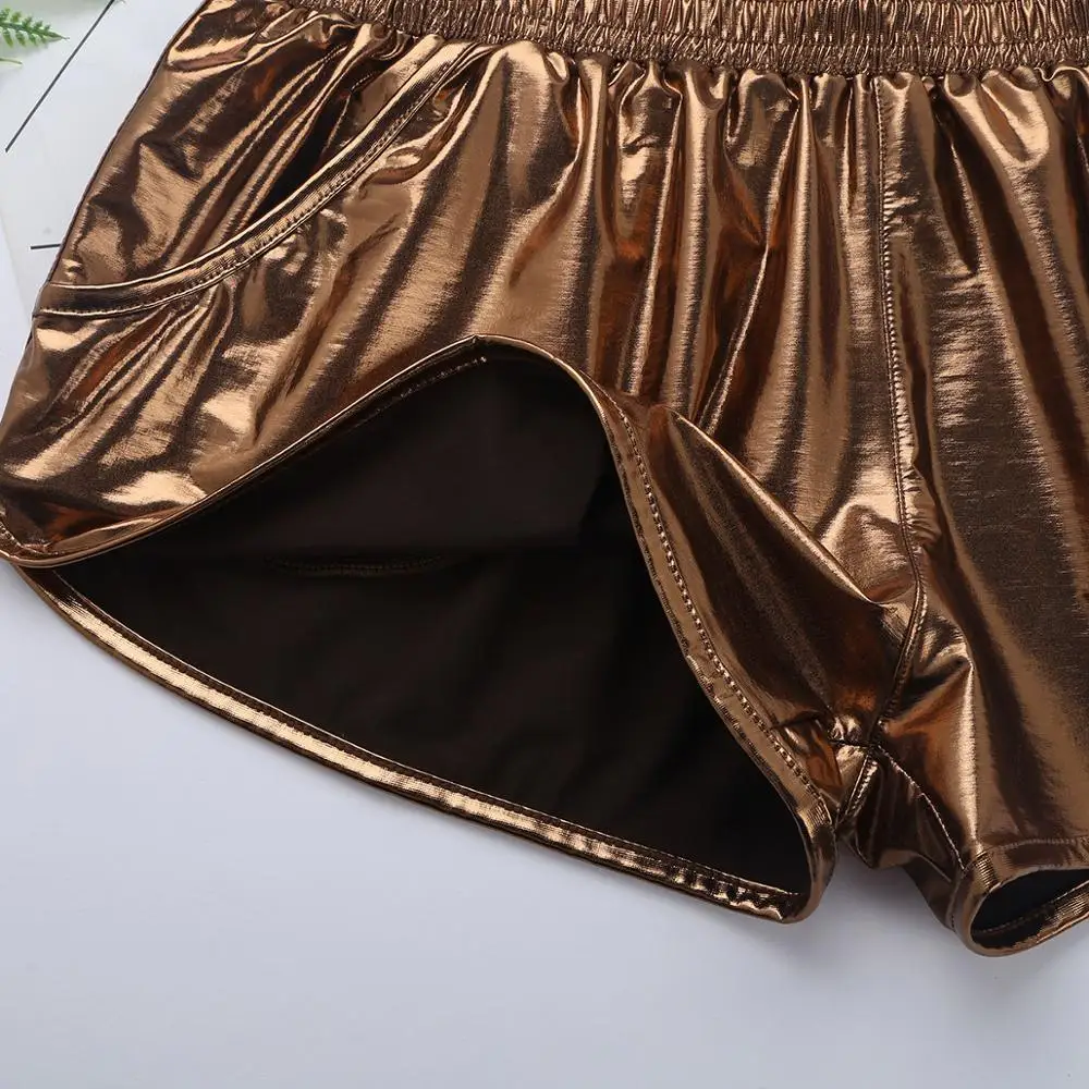 Мужские блестящие металлические трусы-боксеры для ночного клуба и танцев на шесте, сексуальные эластичные шорты с низкой талией, водонепроницаемые трусы