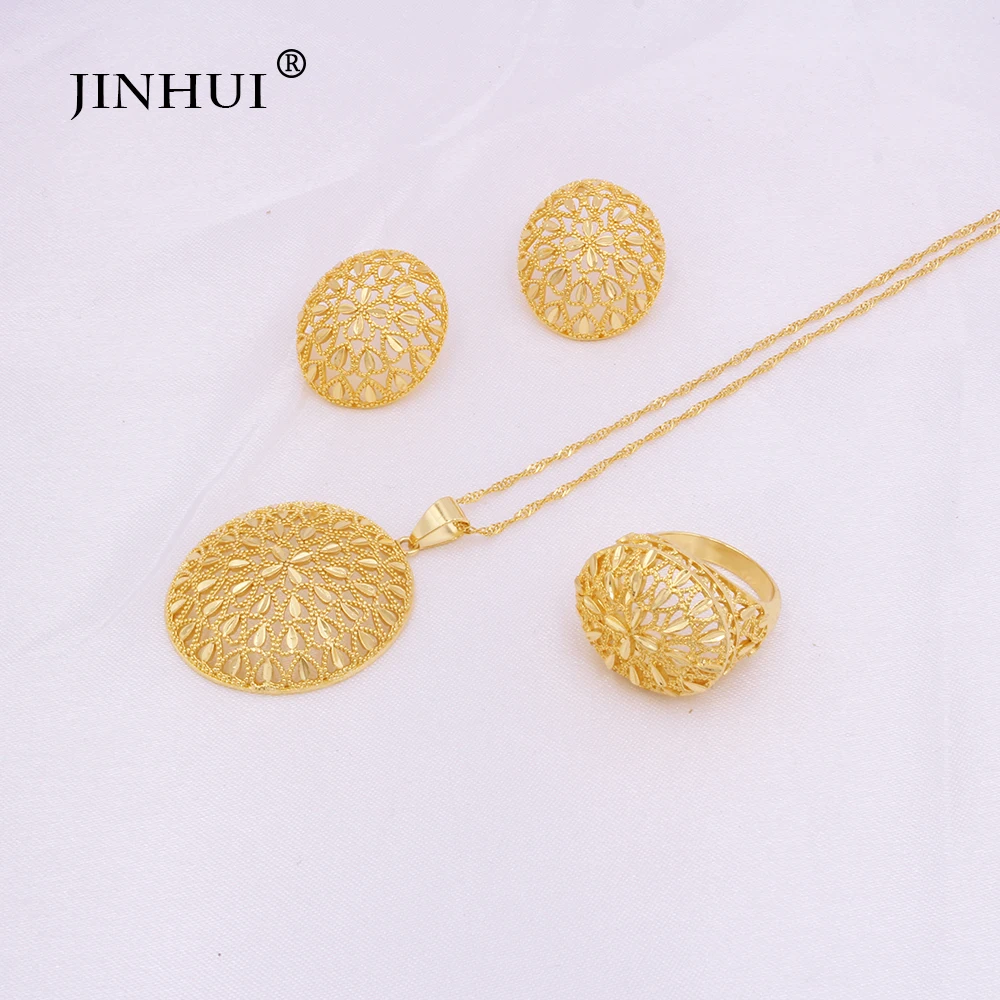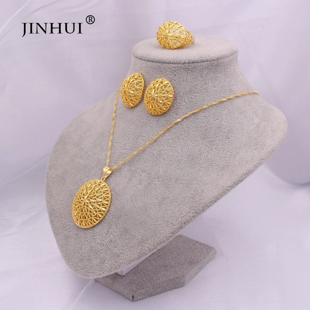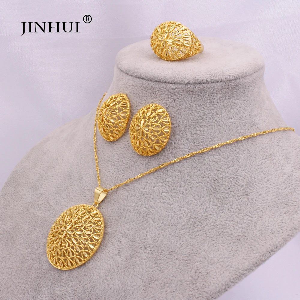 Женский комплект ювелирных изделий из золота 24 К, в африканском стиле, с овальным кулоном, вечерние серьги и ожерелье для невесты