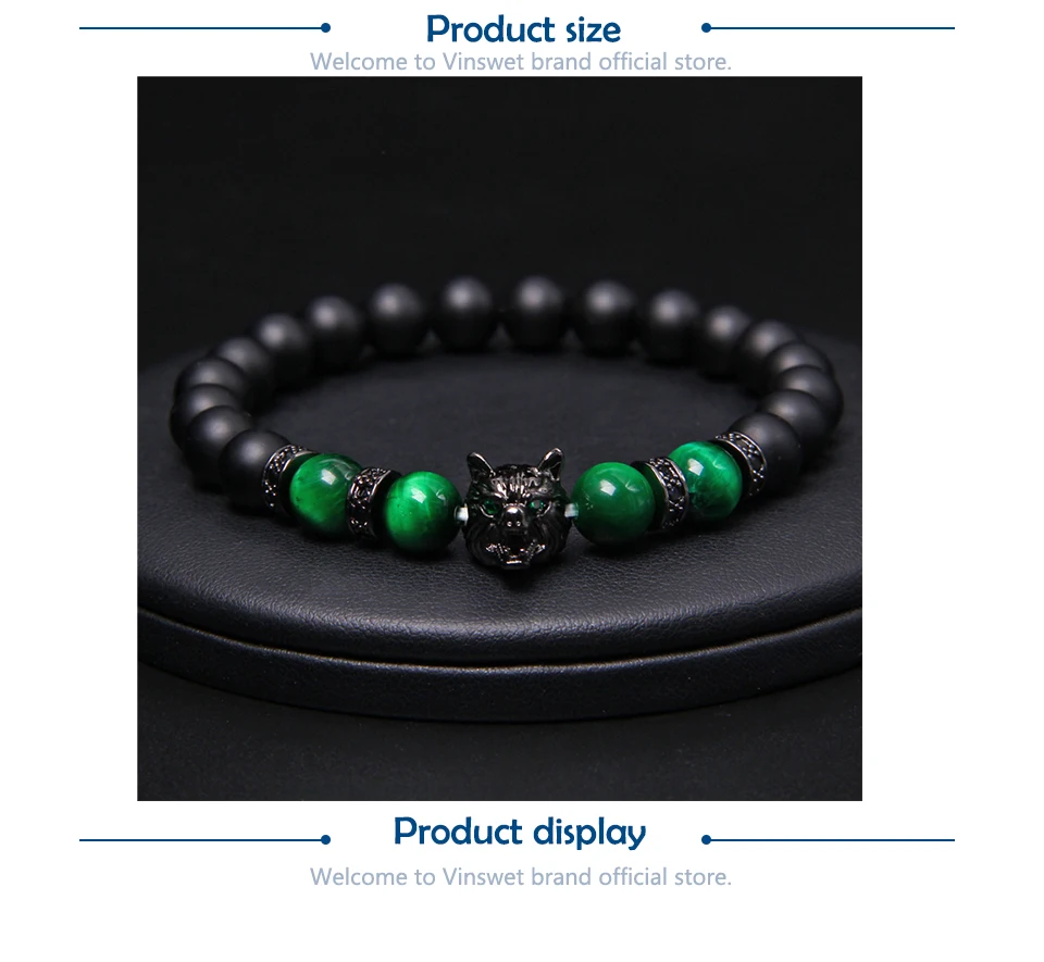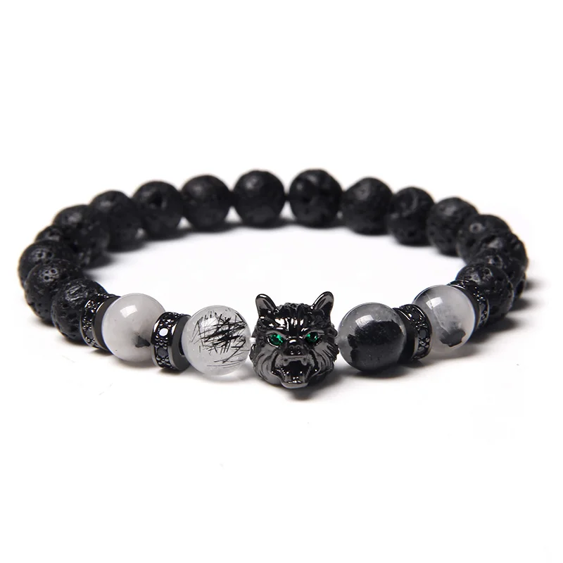 Бусины Wolf мужские браслеты с подвесками натуральные черные, браслеты из лавового камня храбрые, браслеты с тигровым глазом, для женщин, эластичные украшения, 8 мм